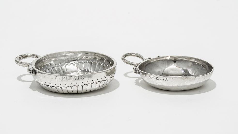 387. Deux taste-vin à anse serpents d'époque Louis XV et Louis XVI