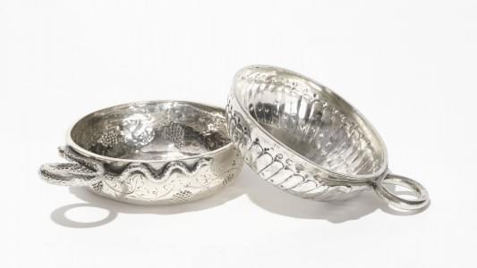 Porcelaine et émaux polychromes à décor de vases, anse gainée d'...