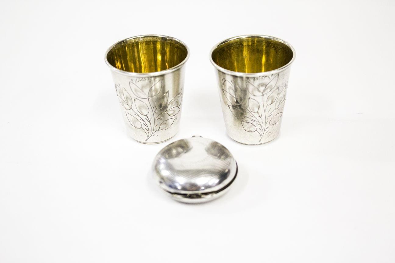 Verre à décor de paysage lacustre et élégantes, H 8 cm