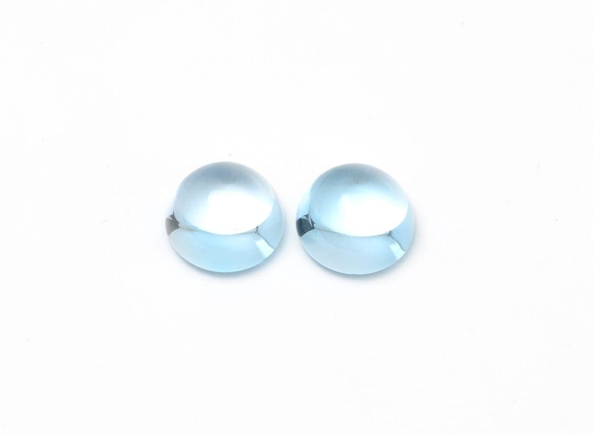 Deux topazes bleues en cabochon sur papier (100 cts)