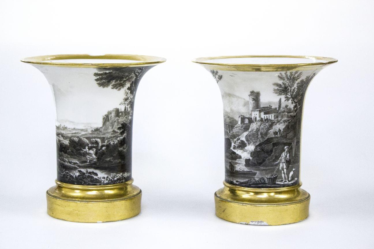 Porcelaine à décor de scènes bucoliques en grisaille, H 19 cm