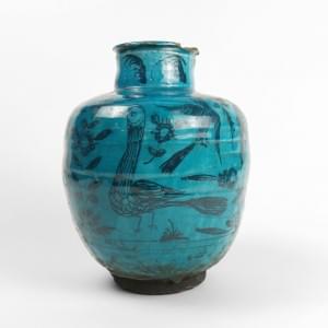 Céramique à glaçure turquoise, H 18 et 28 cm