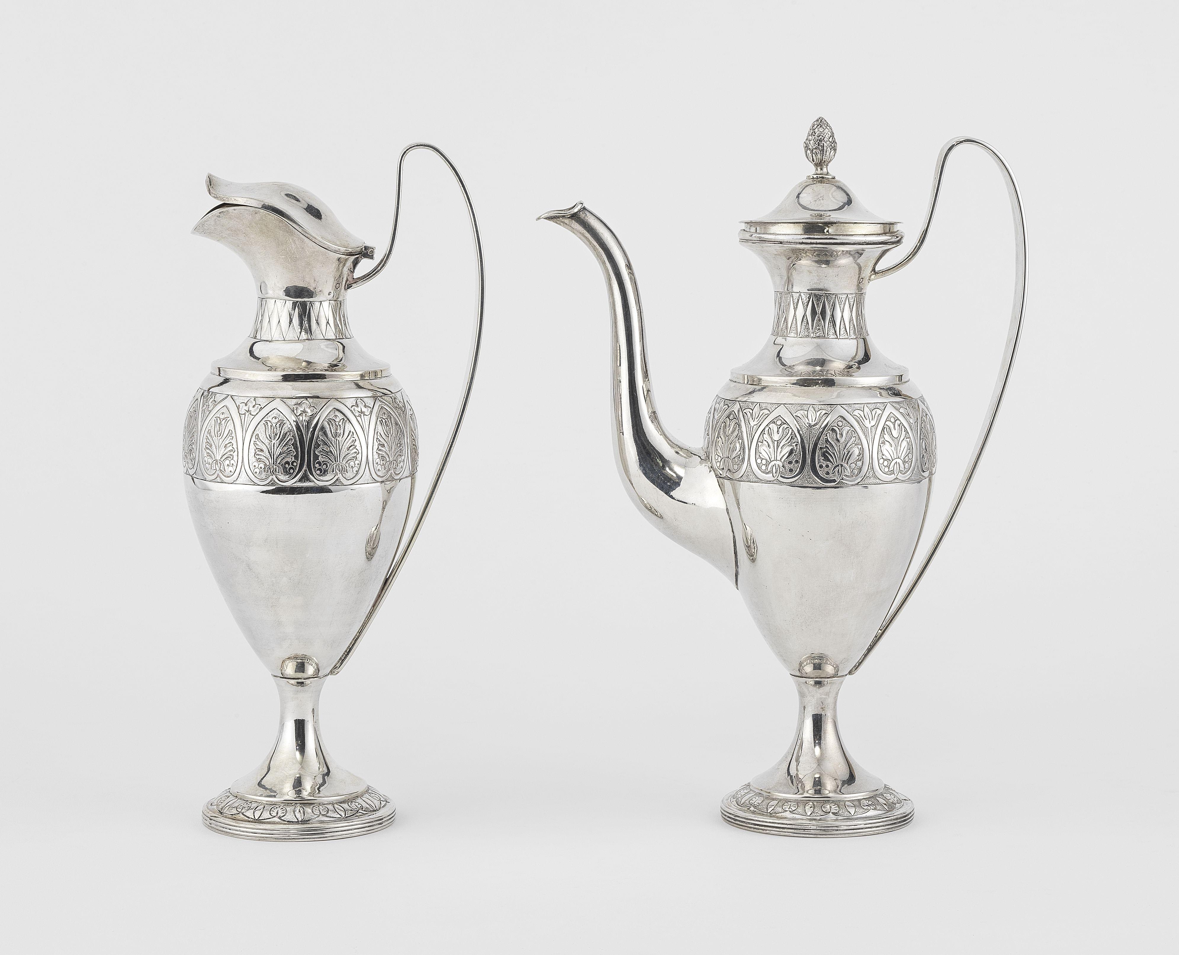 401. Deux verseuses néoclassiques à motif de palmettes