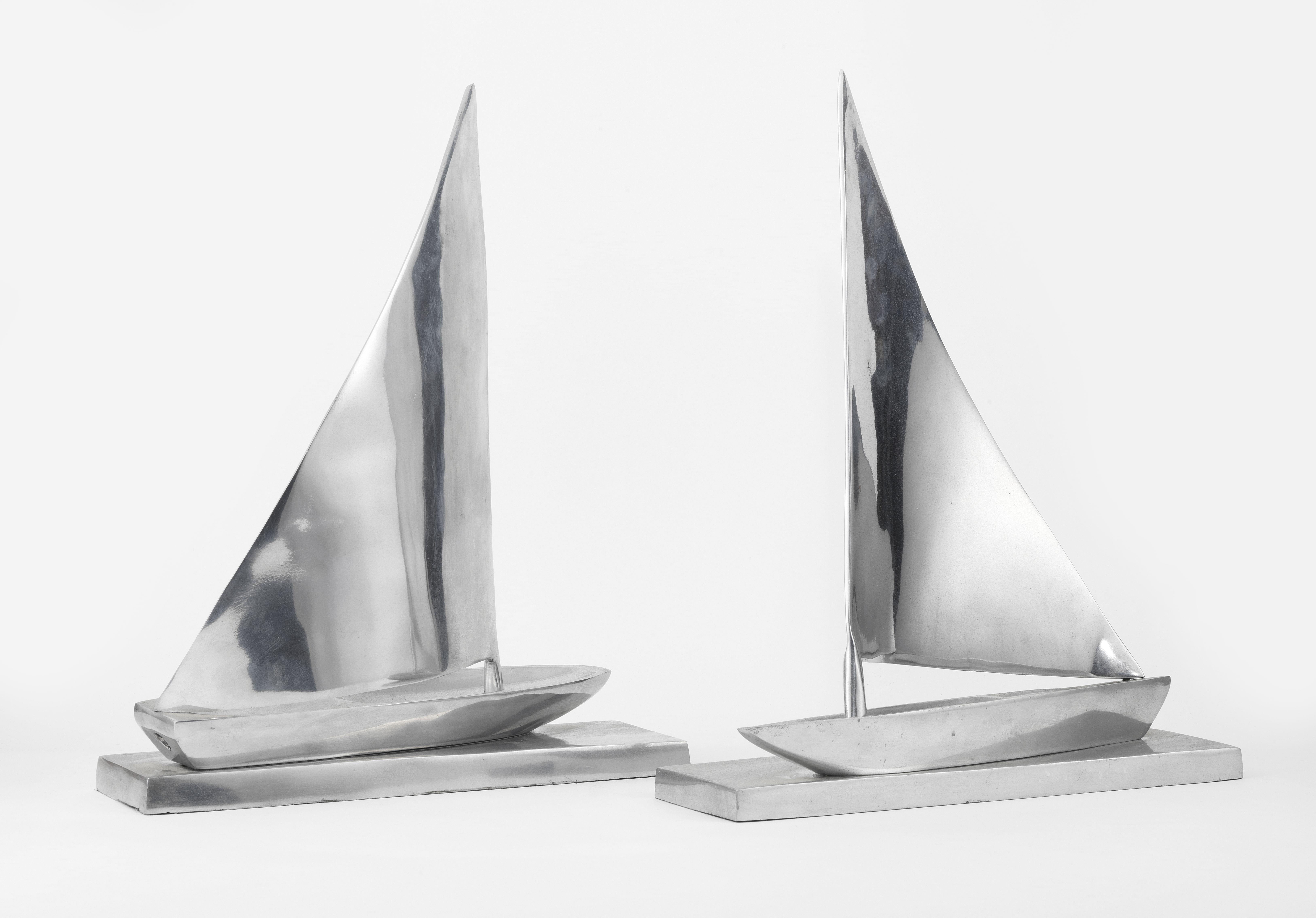 190. Bracelet articulé ouvrant, émaillé bleu et blanc, à motif de deu...