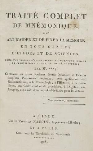 68. DIDIER (Jules) et GUIVARD (François) : Traité complet de Mnémonique ou l’Art d’aider et de fixer la mémoire. Lille et Paris, 1808