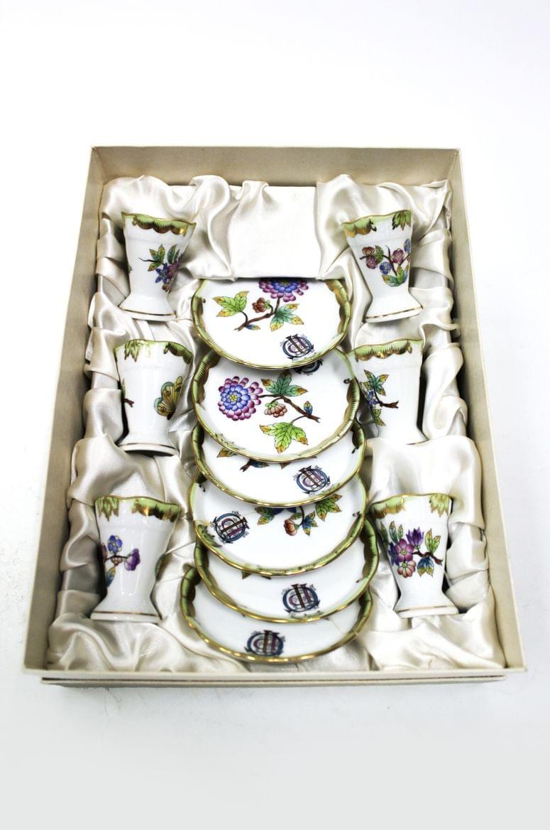 3291. Dinette à décor de fleurs composée de 6 gobelets et 6 coupelles