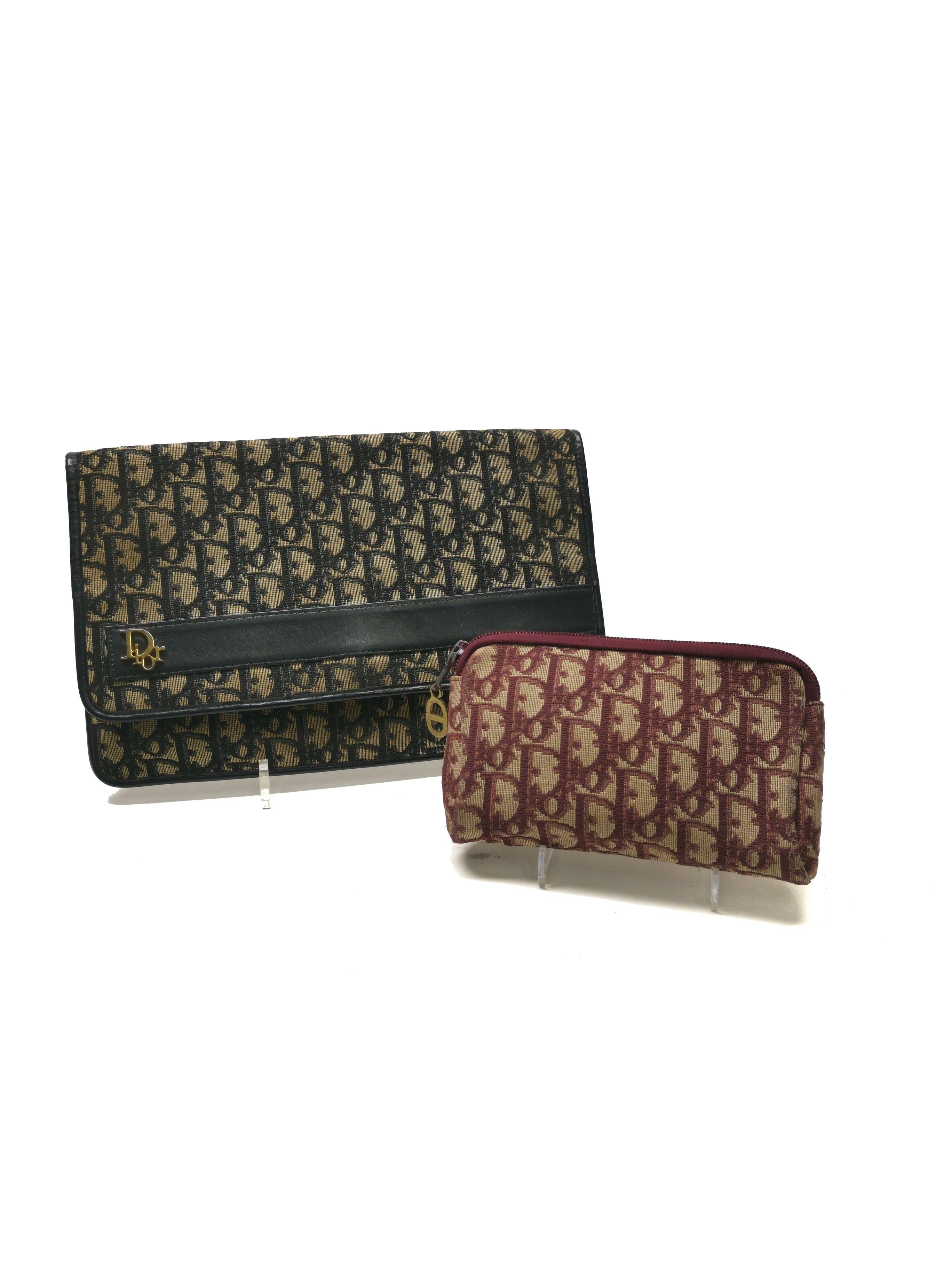 Cuir et tissu monogrammé bleu et rouge, 18x28 cm et 10x16 cm