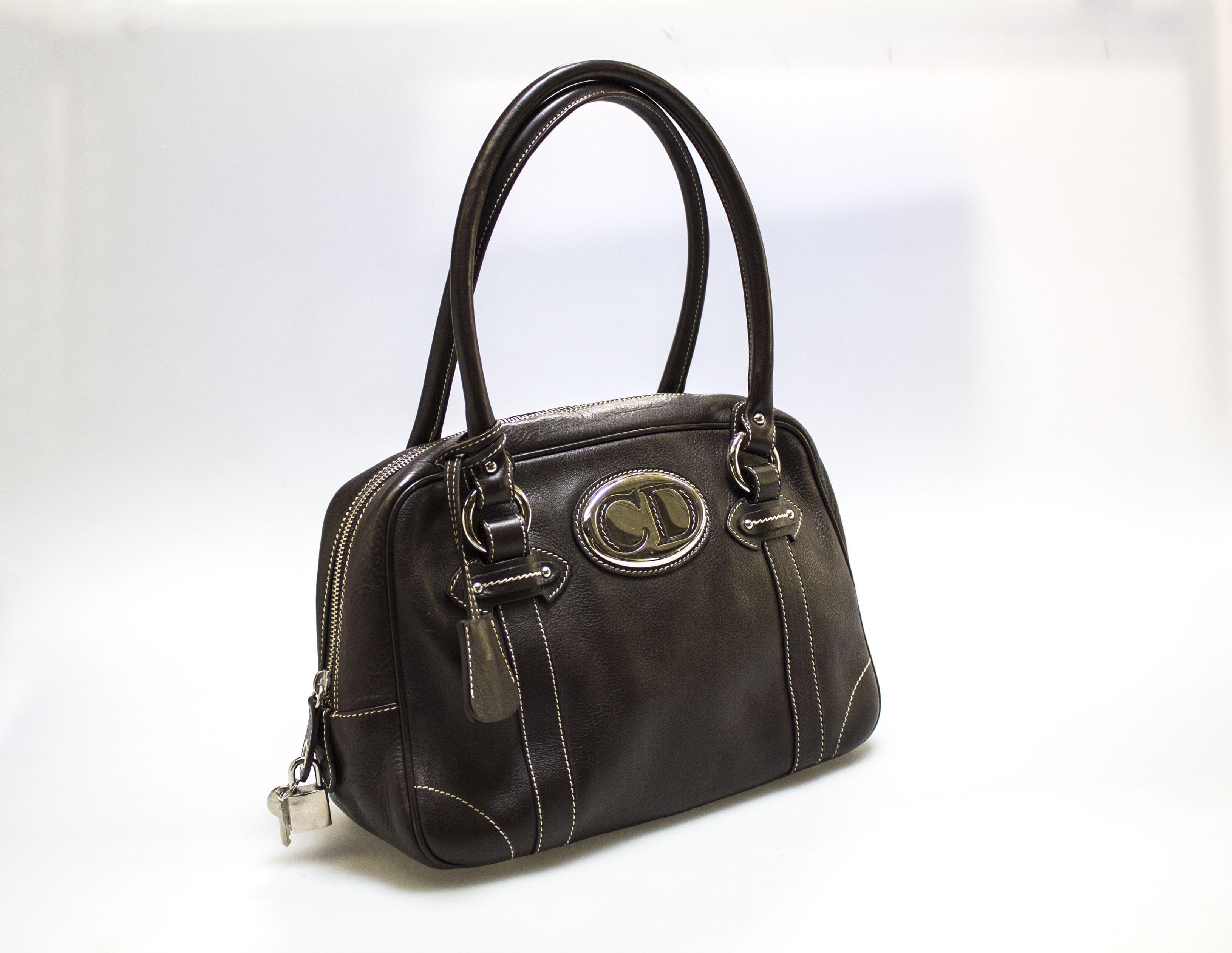 Garniture en métal argenté, double anse en cuir et daim marron,...