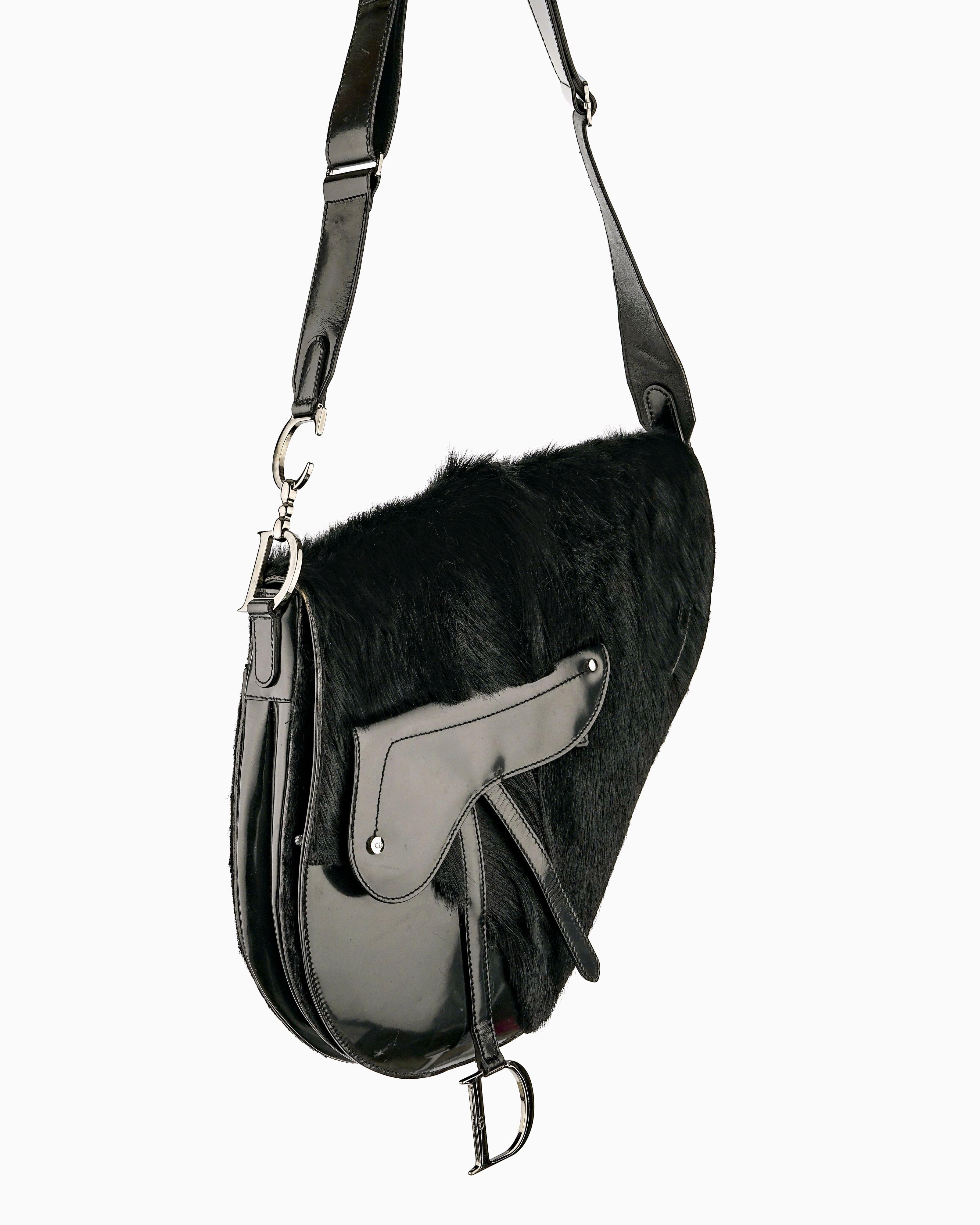 Garniture en métal argenté, double anse en cuir et daim marron,...