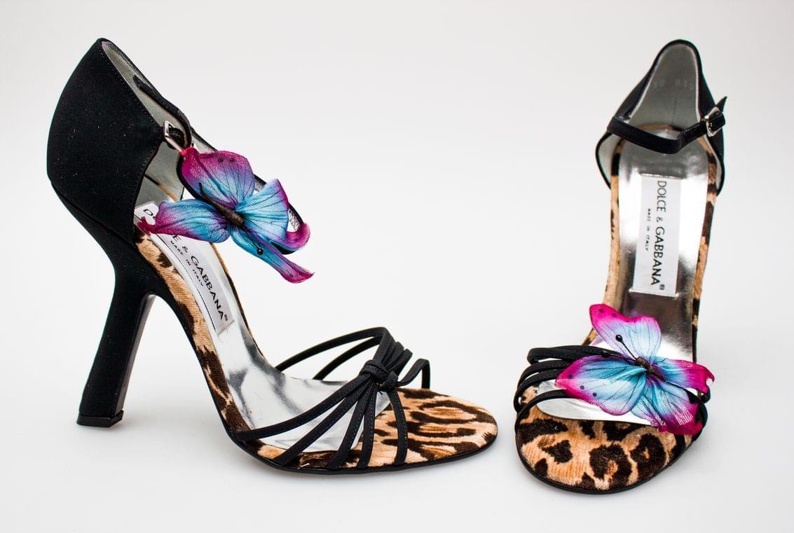 Paire d'escarpins léopard décorés d'un papillon, T 37.5