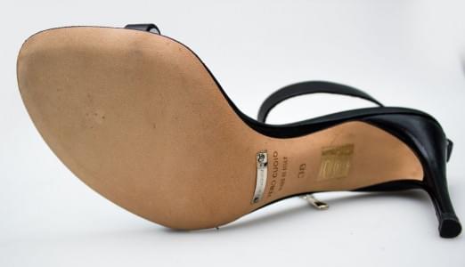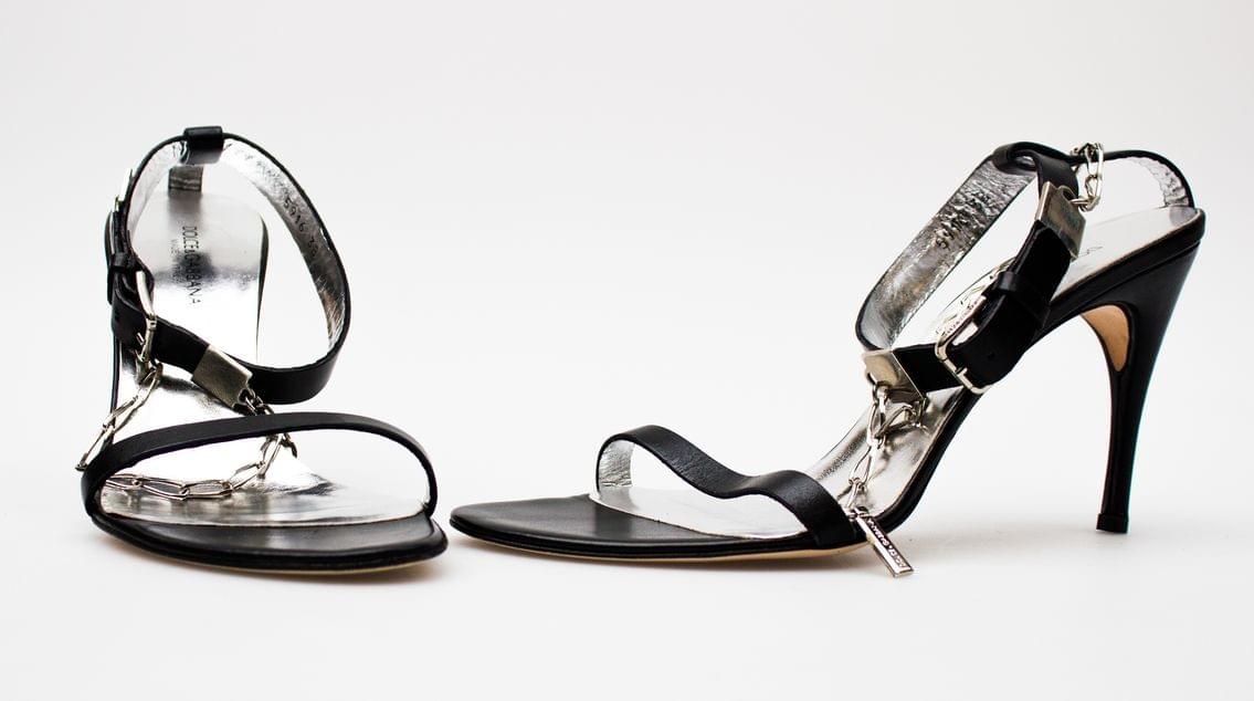 Paire de sandales à talon, cuir et chainette, T 38