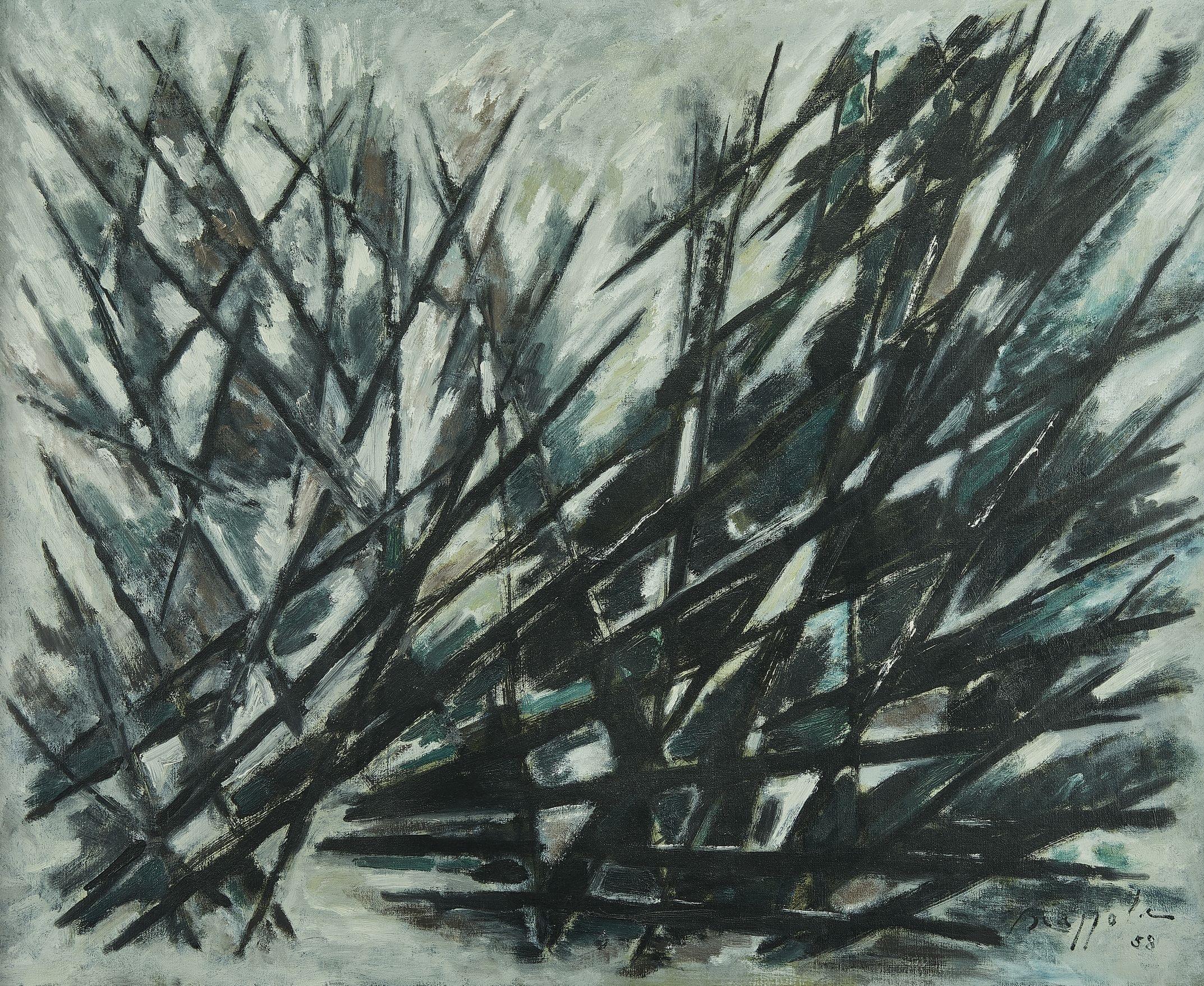 Frimas, huile sur toile, signée et datée 58, 65x82 cm