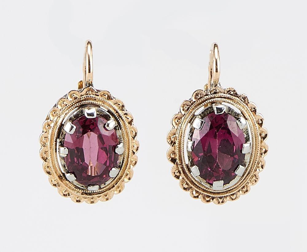 3258. Dormeuses serties de rhodolites taille ovale (env. 2,5 ct)