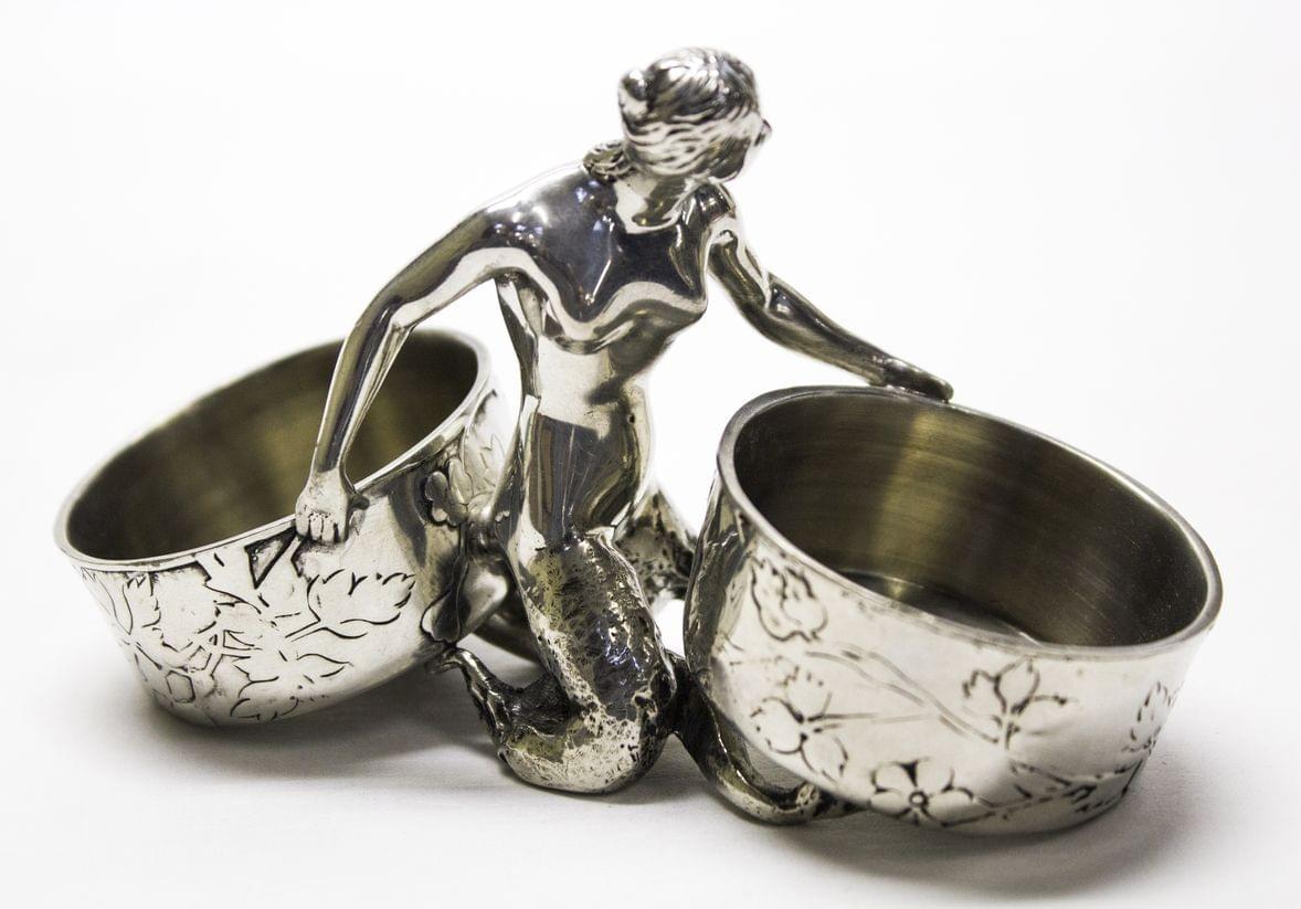 3119. Double saleron d'époque Art Nouveau à décor de sirène