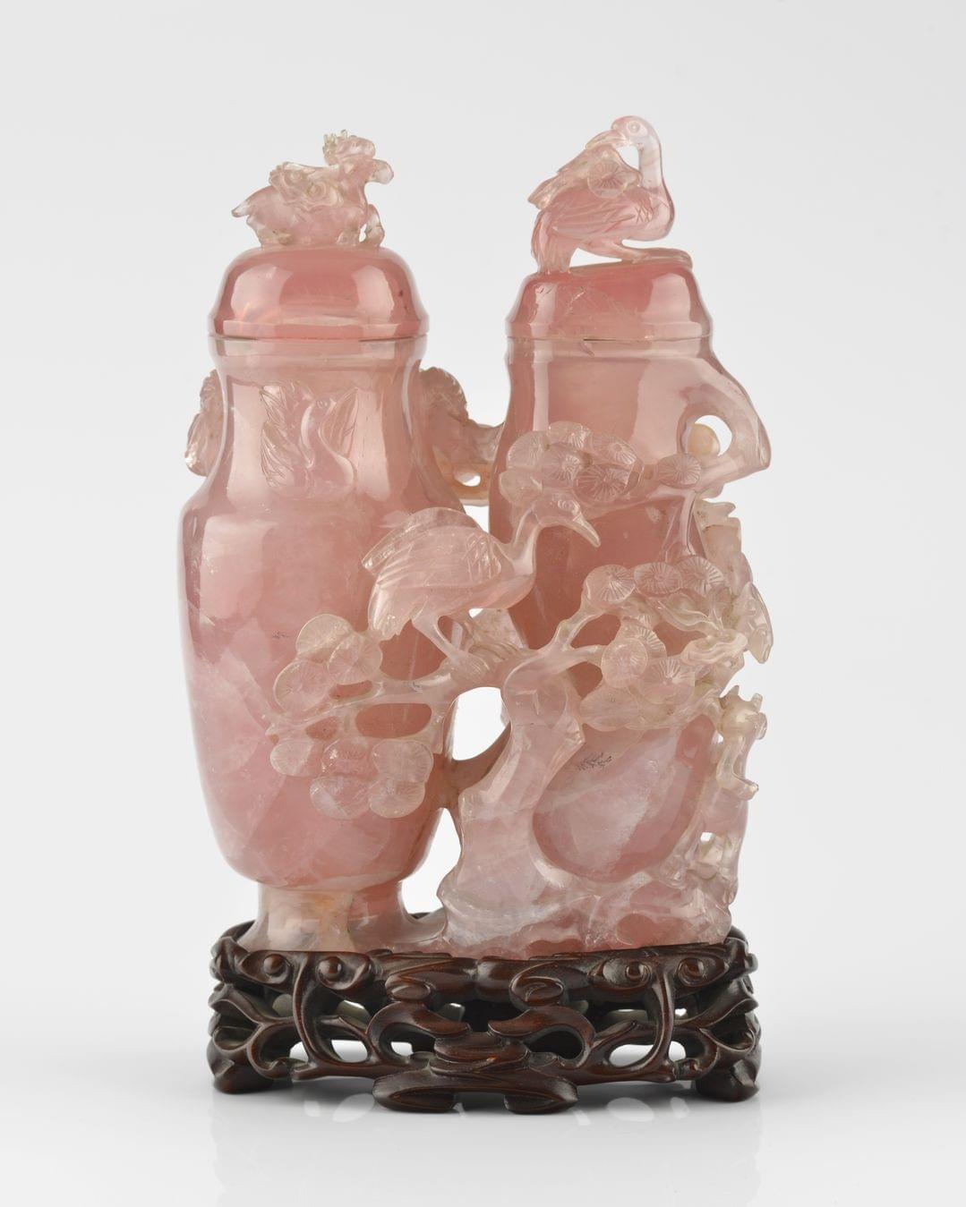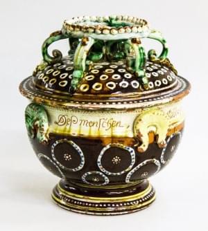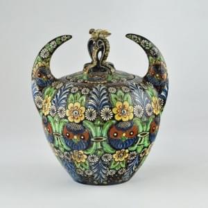 341. Important pot couvert surmonté d'une colombe à anses formant cro...