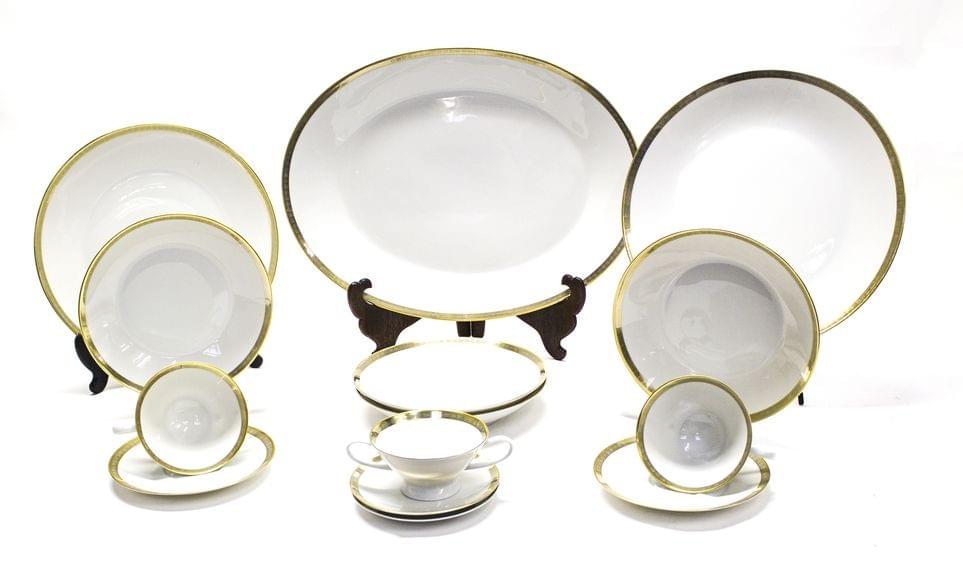 Service à dîner à bordure ornée de rocailles dorées et monogramm...