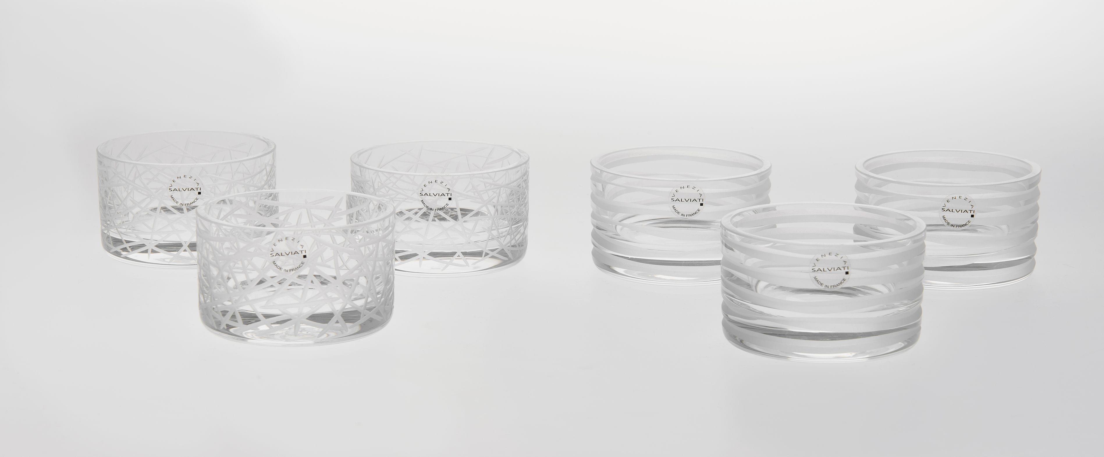 Verre transparent et verre opaque bleu, H 27 et 29 cm