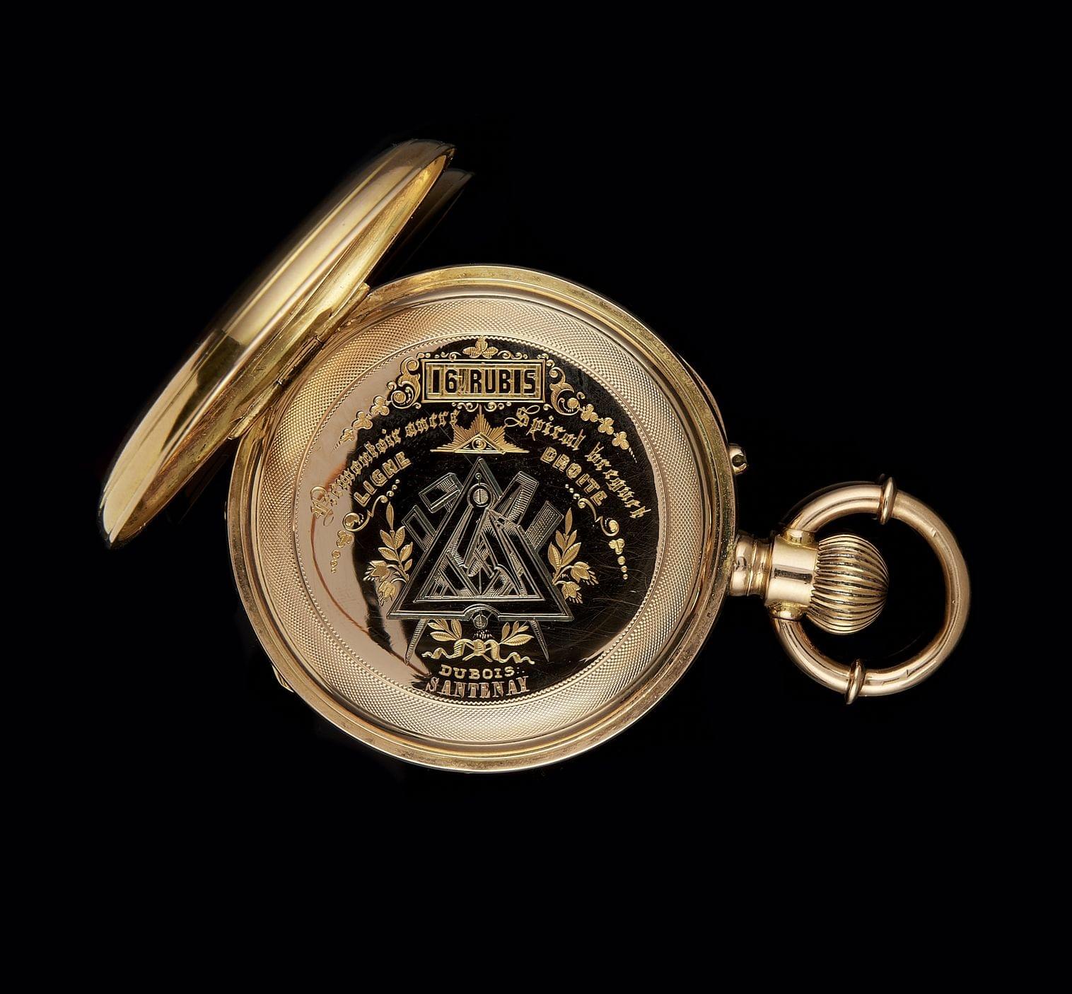 373. Dubois à Santenay, montre de poche guillochée gravée à l'intérieur de symboles maçonniques