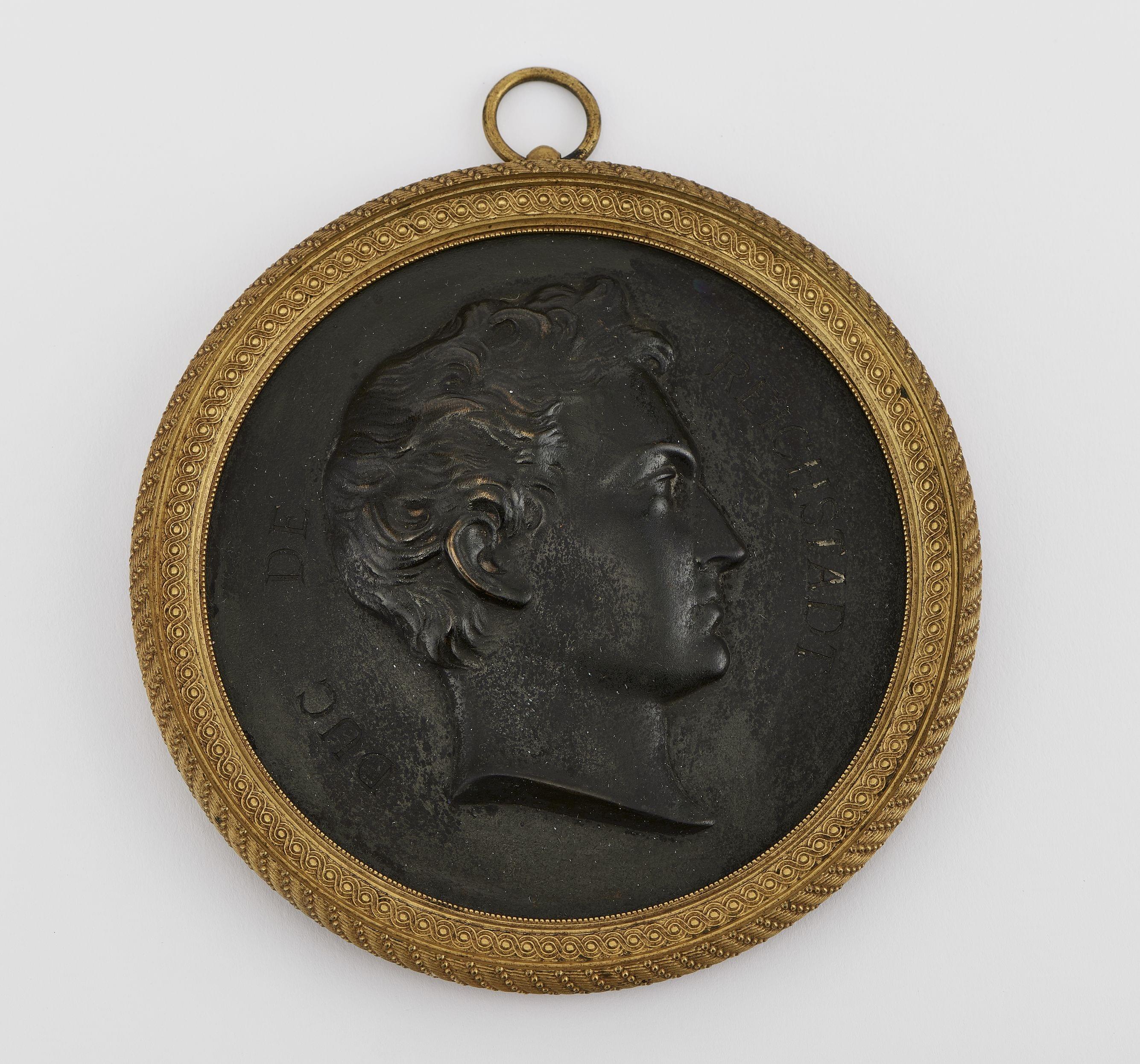 Profil en bas-relief, bronze à patine brune, XIXe s, D 10 cm
