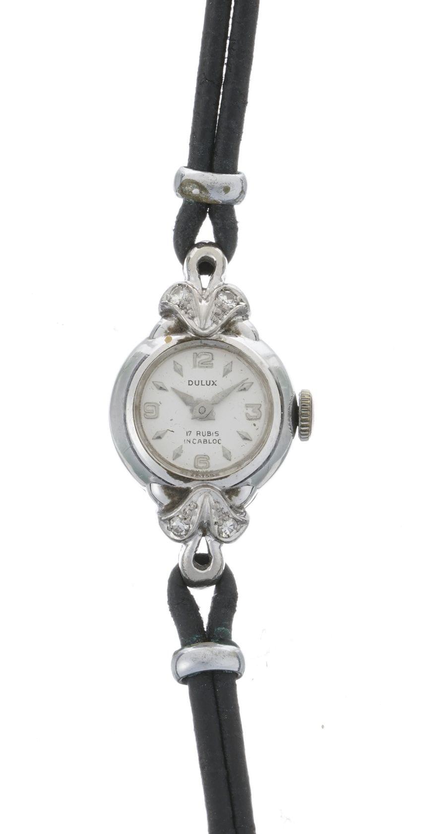 3049. Dulux, montre ronde mécanique sertie de diamants