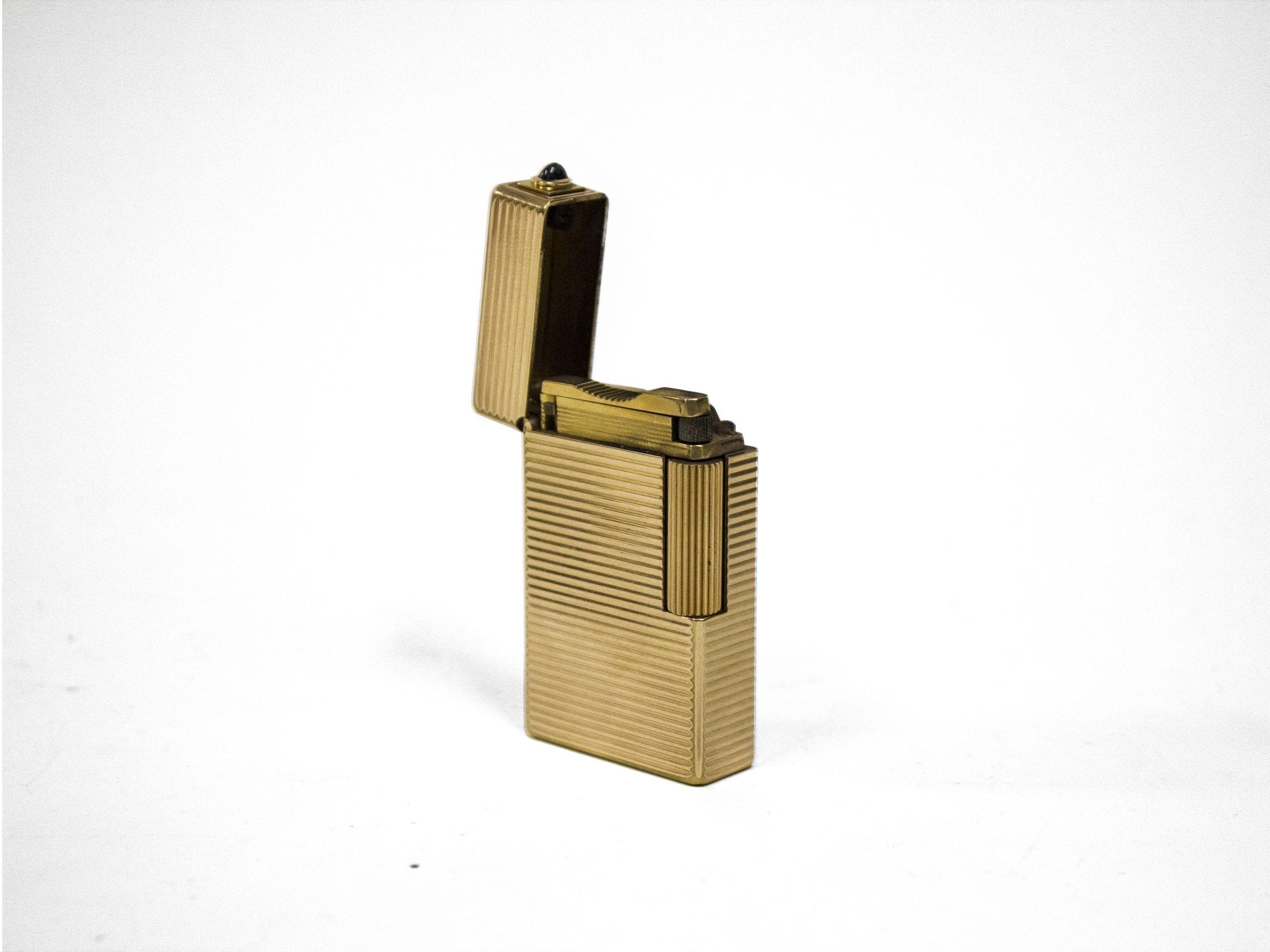 3116. Dupont, briquet à décor de stries serti d'un saphir en cabochon