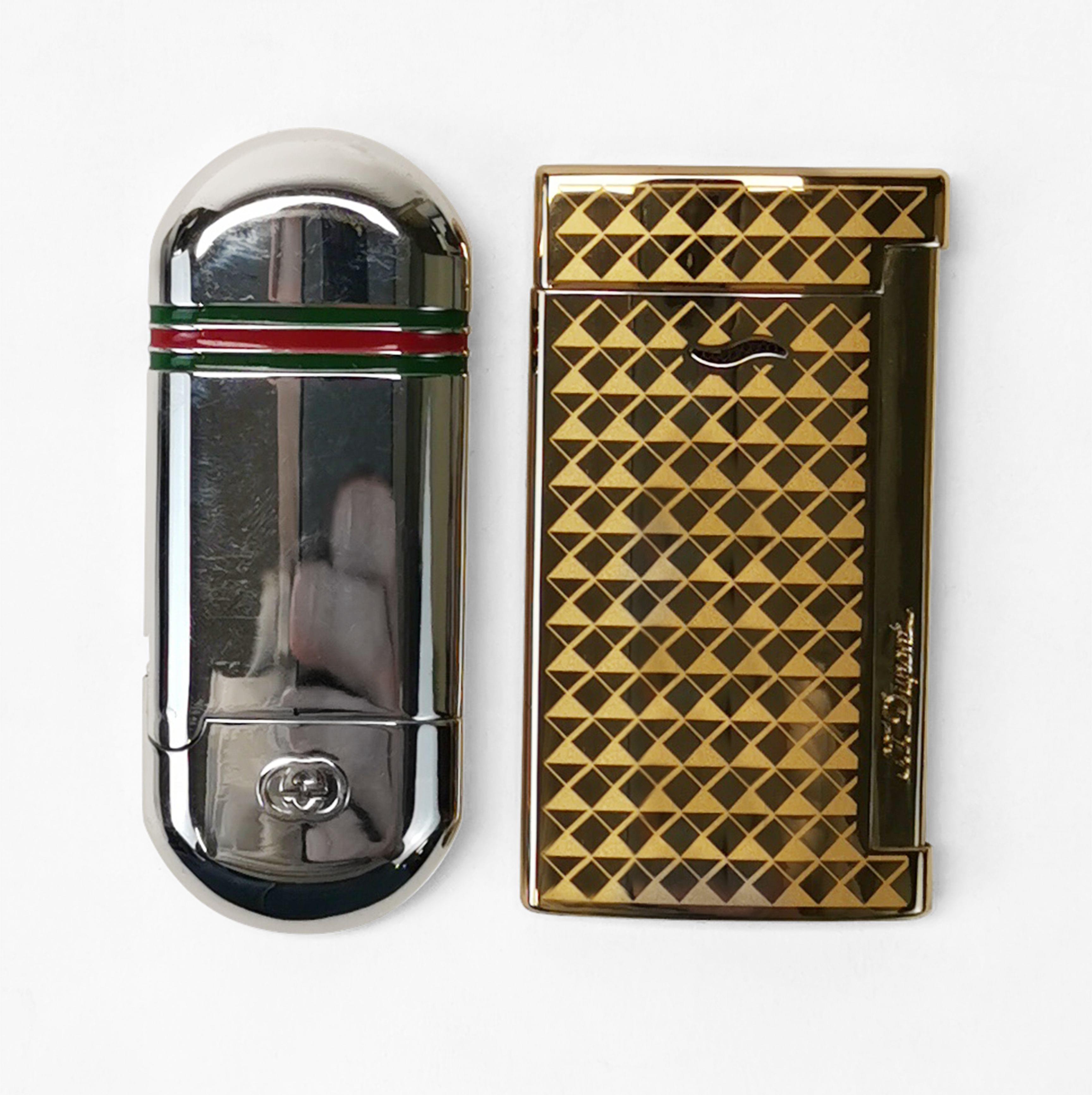 Métal doré "slim" et métal argenté à bandes rouges et vertes, H 7 cm