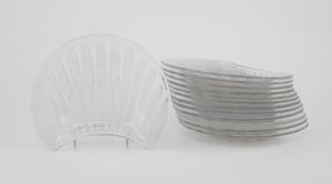 Verre blanc moulé-pressé et opalescent, H 20,5 cm. Modèle créé e...