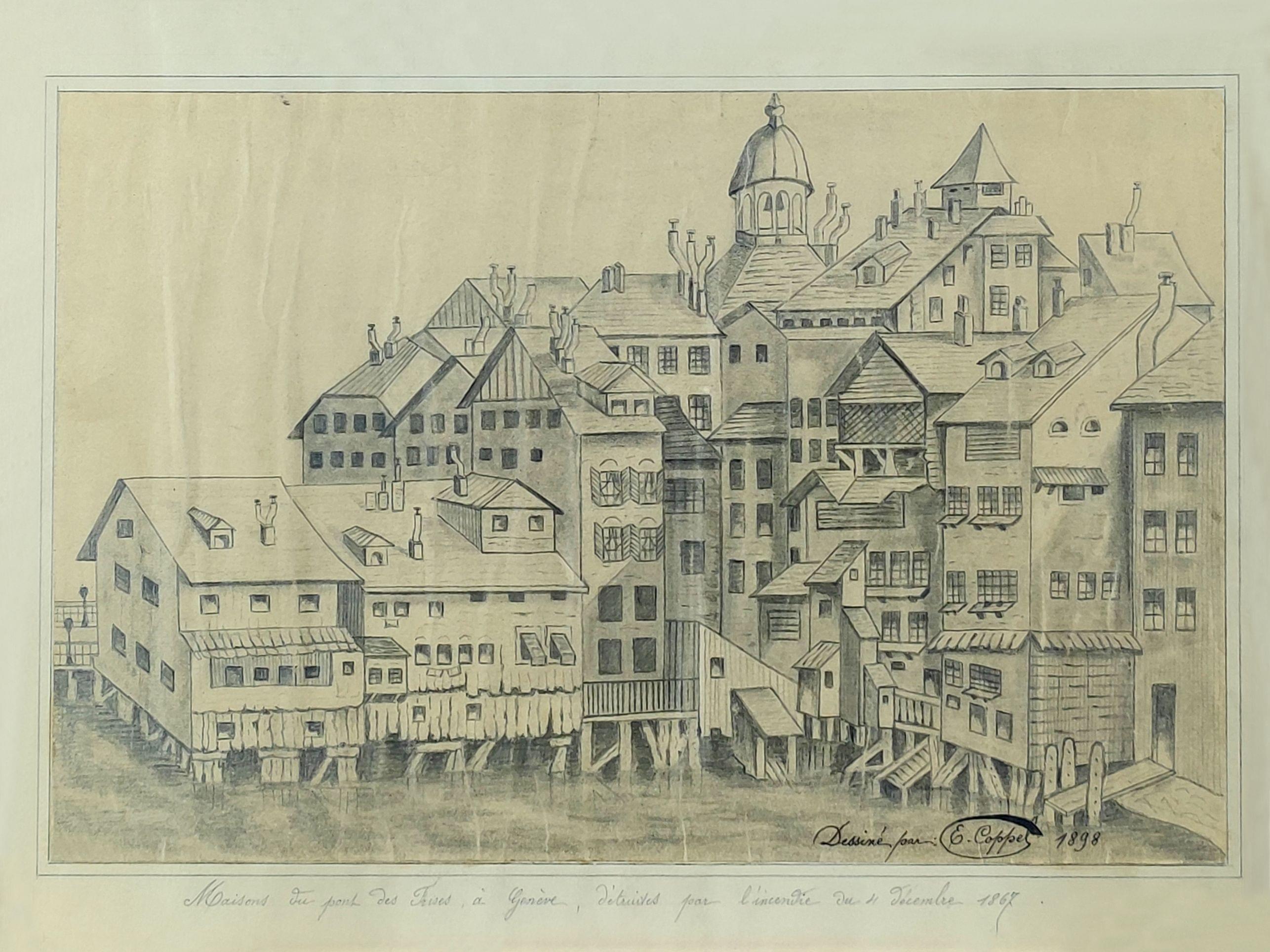 4960. E. Coppel Maisons du pont des frises à Genève détruites par l’incendie du 4 décembre 1867