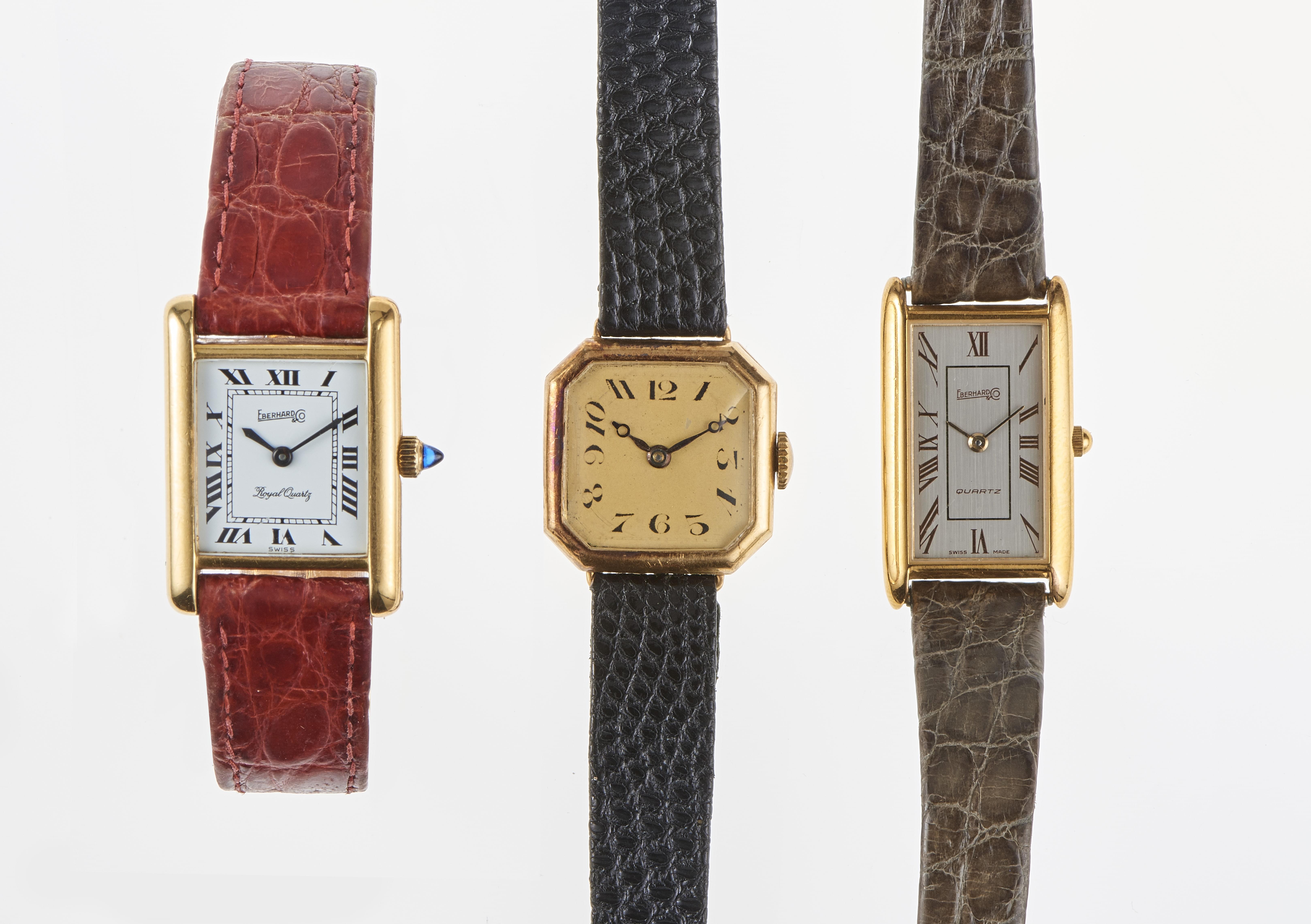 3077. Eberhard & Co, lot de deux montres rectangulaires à quartz