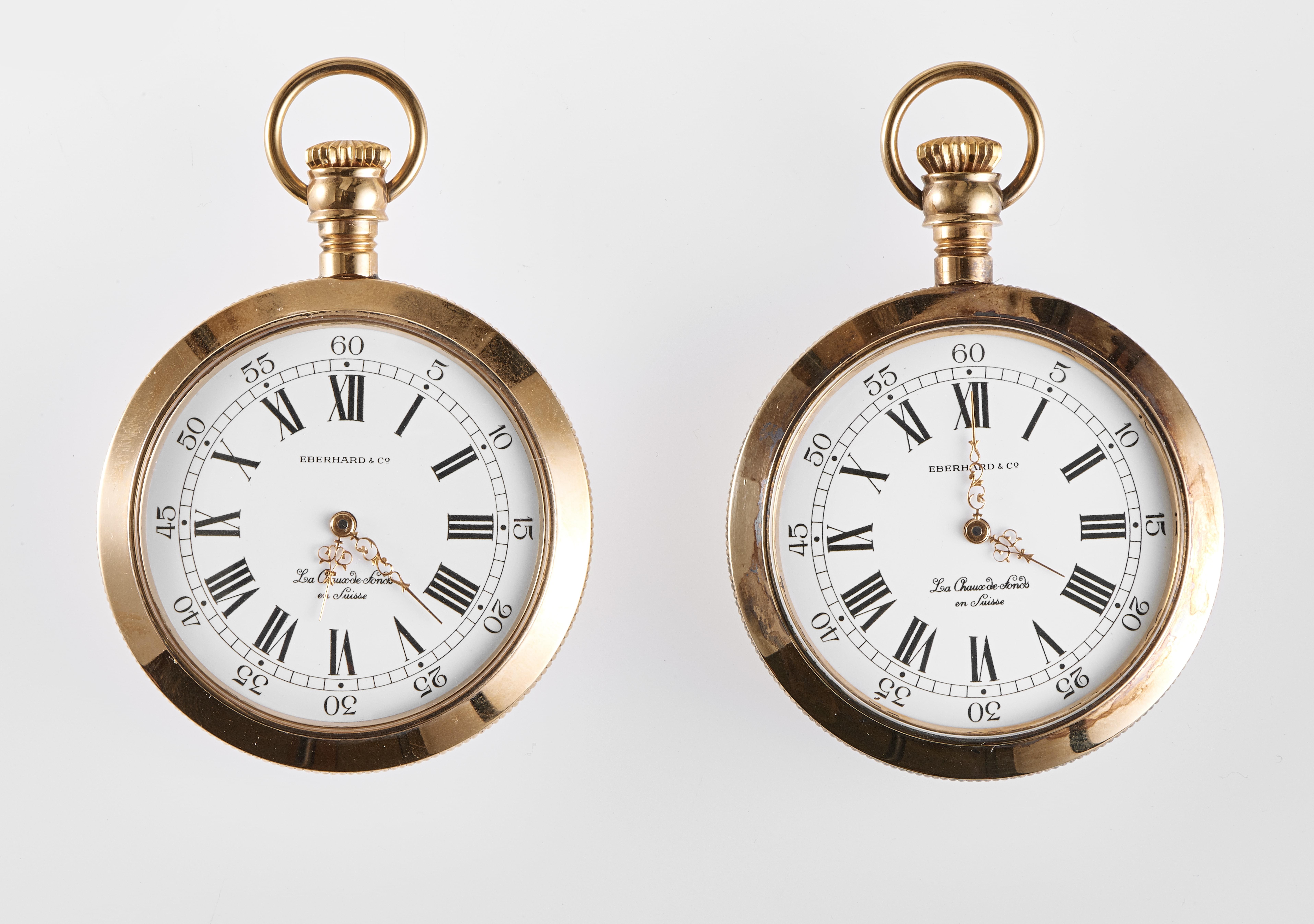 3041. Eberhard, La Chaux-de-Fonds, lot de deux montres de poche à décors de portraits de femmes peints au revers