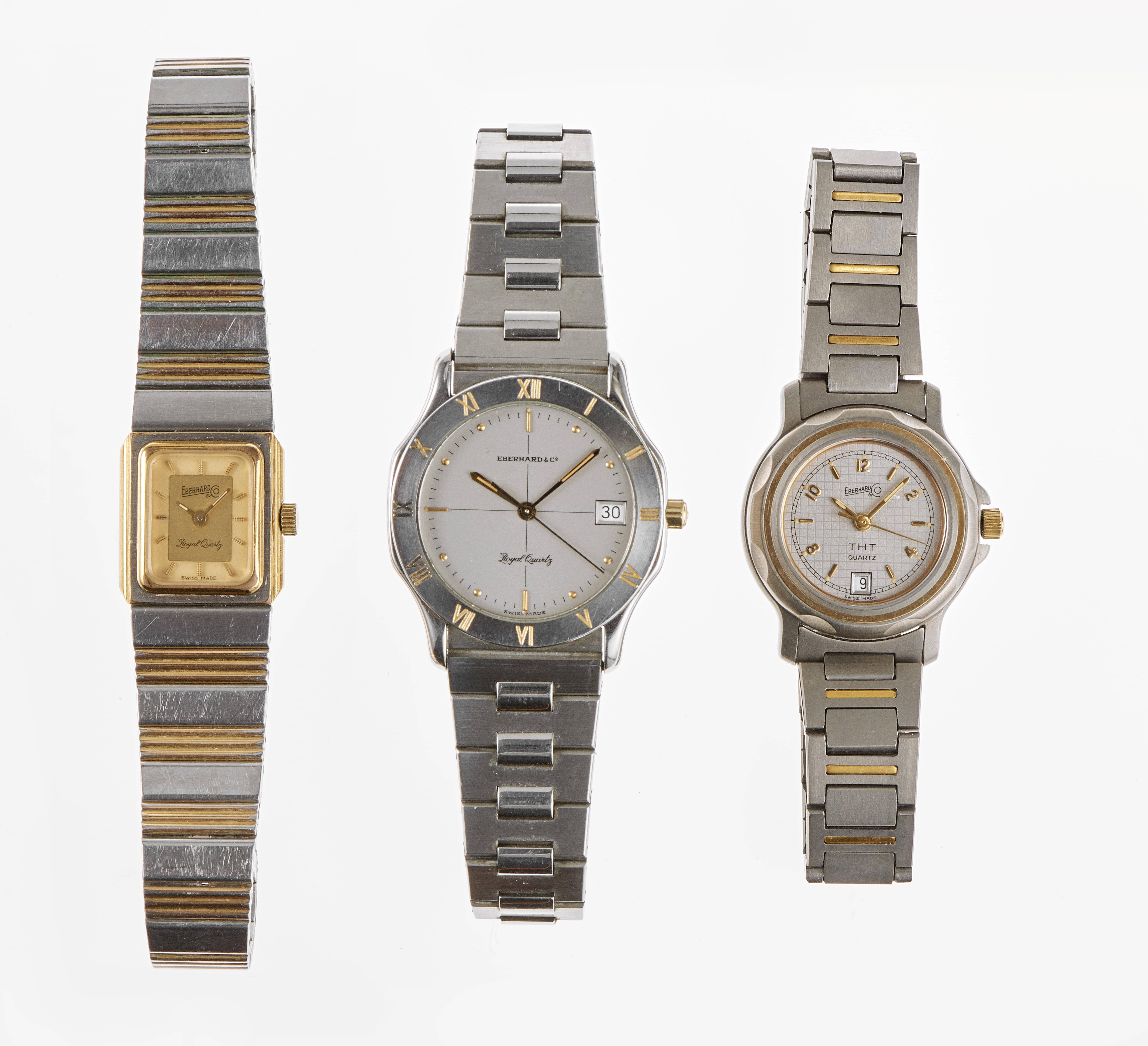 3050. Eberhard, lot de trois montres bracelet rondes à quartz