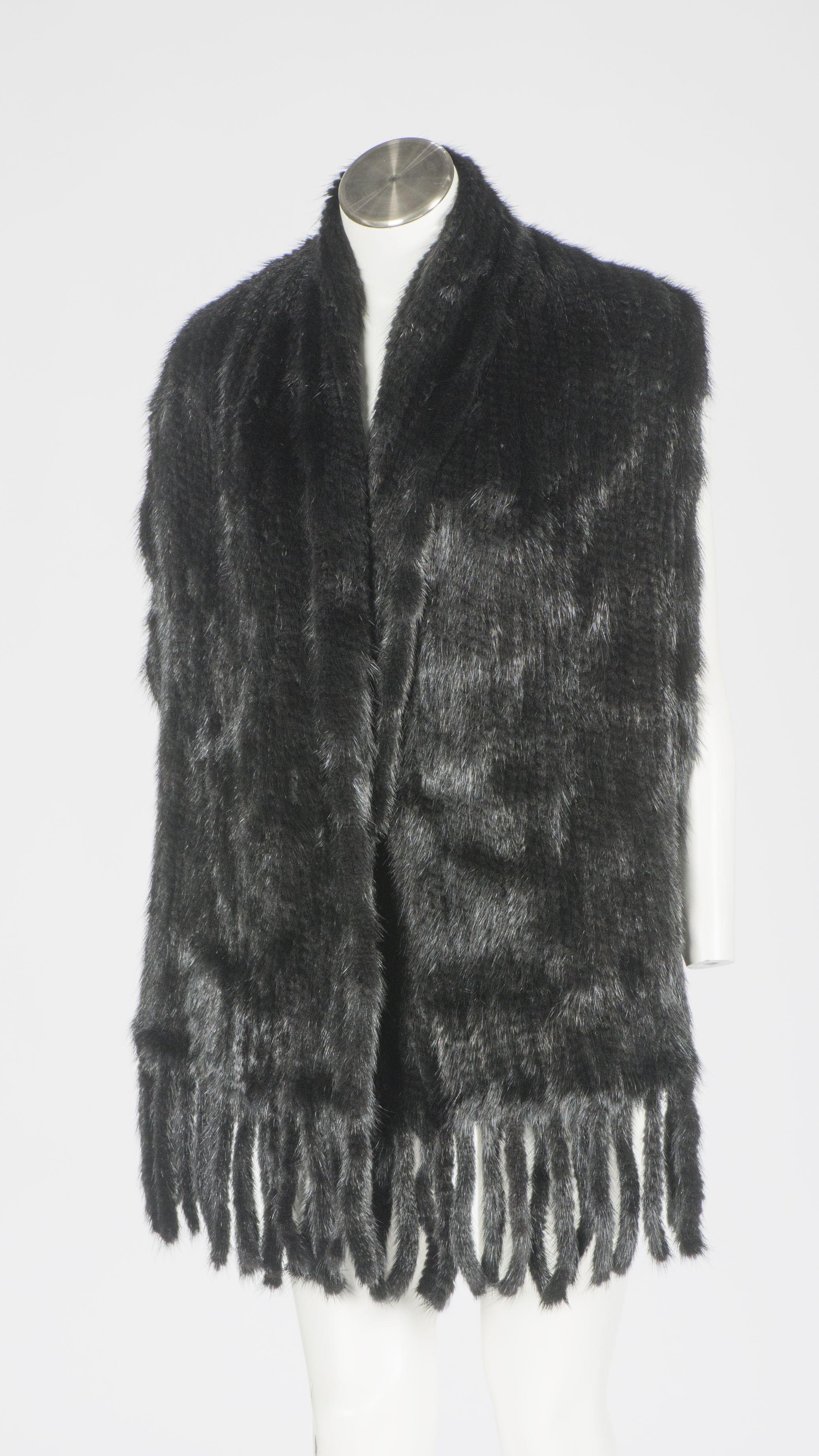Vison tricoté noir, L 170 cm (sans les franges)