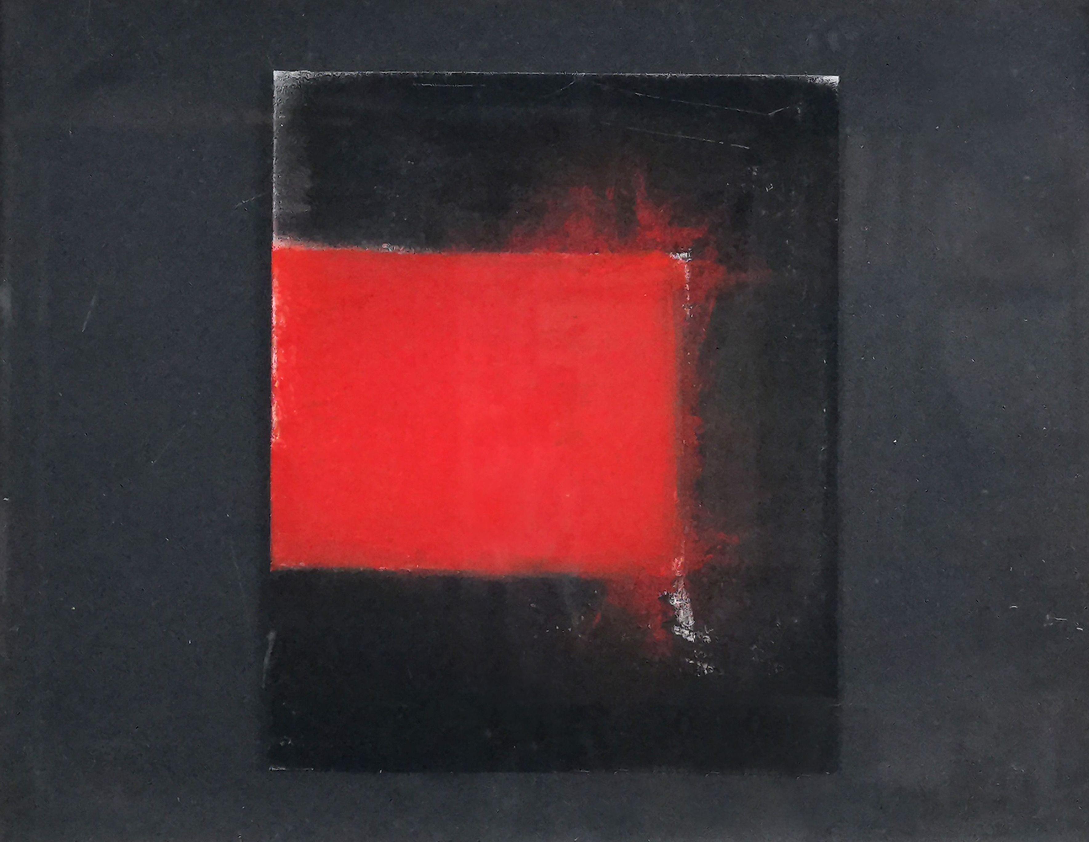 Rectangle rouge dans un rectangle noir, technique mixte, plaque en métal, 19x23 cm