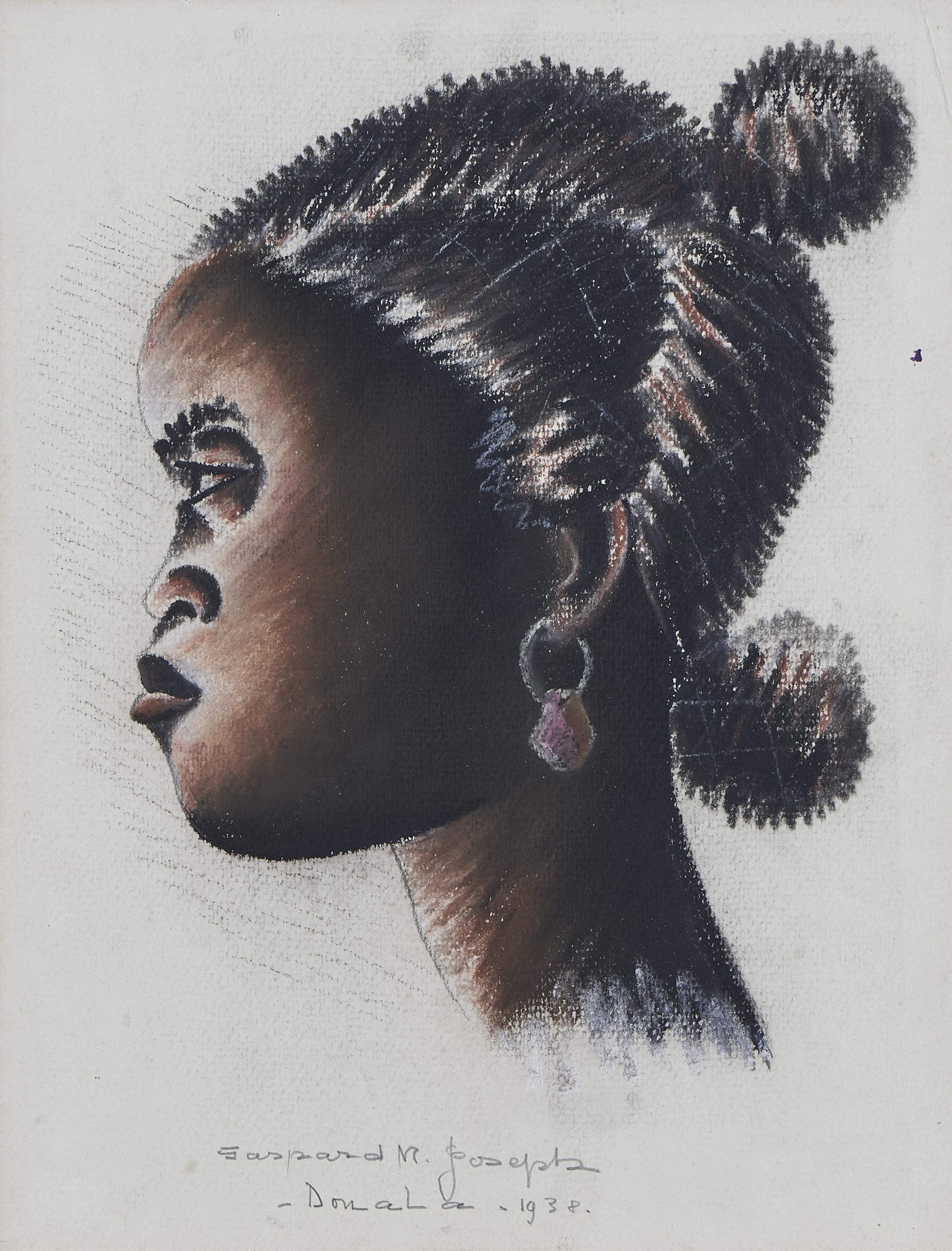 Quatre études de visage, pastels, signés Gaspard De Mouko, datés 1938, 30x21 cm
