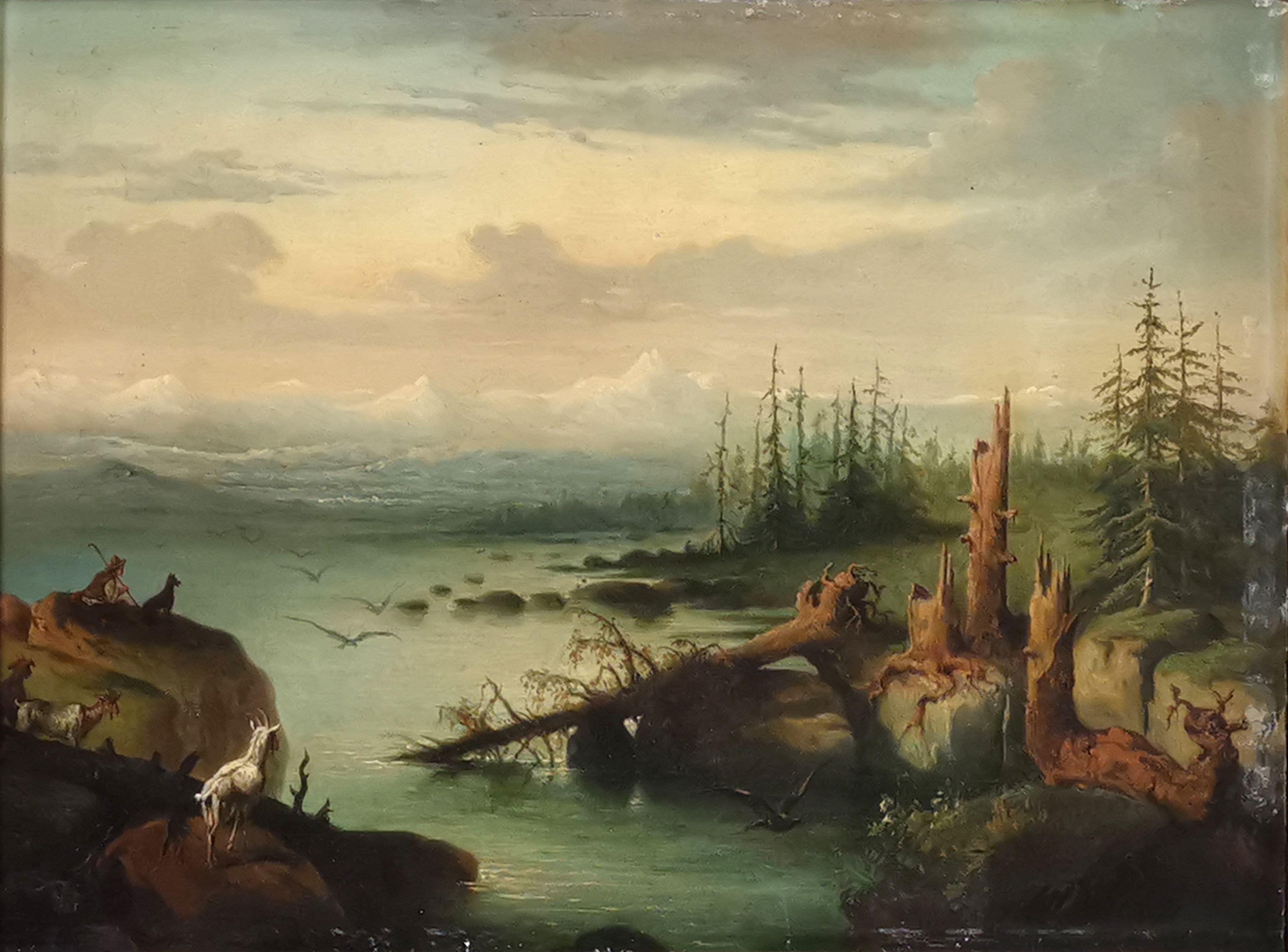 Paysage au berger, huile sur panneau, 26,5x35 cm