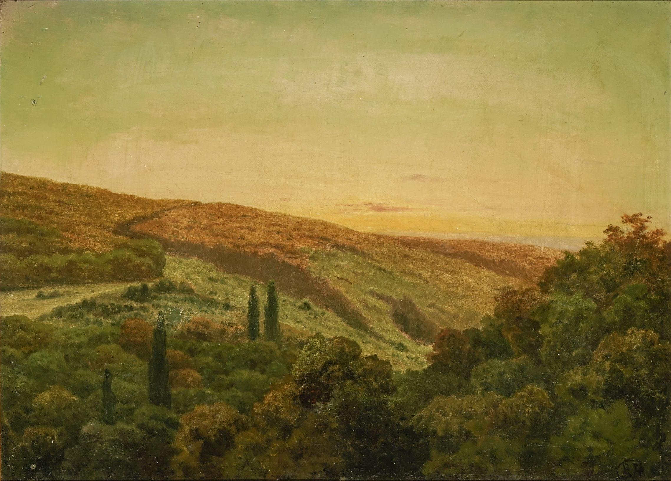 Paysage vallonné, huile sur toile, monogrammée EH, 46,5x65 cm