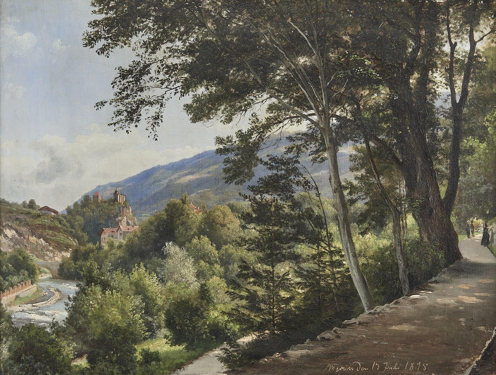 Vue du Rhin, huile sur toile, signée et datée Merinden 1875