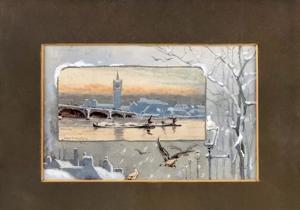 Deux vues de Londres, paire d'aquarelles et gouaches sur papier, 10x17 cm