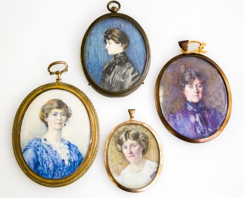Quatre portraits de dames, miniatures, aquarelle et gouache sur ivoire, H 8 cm
