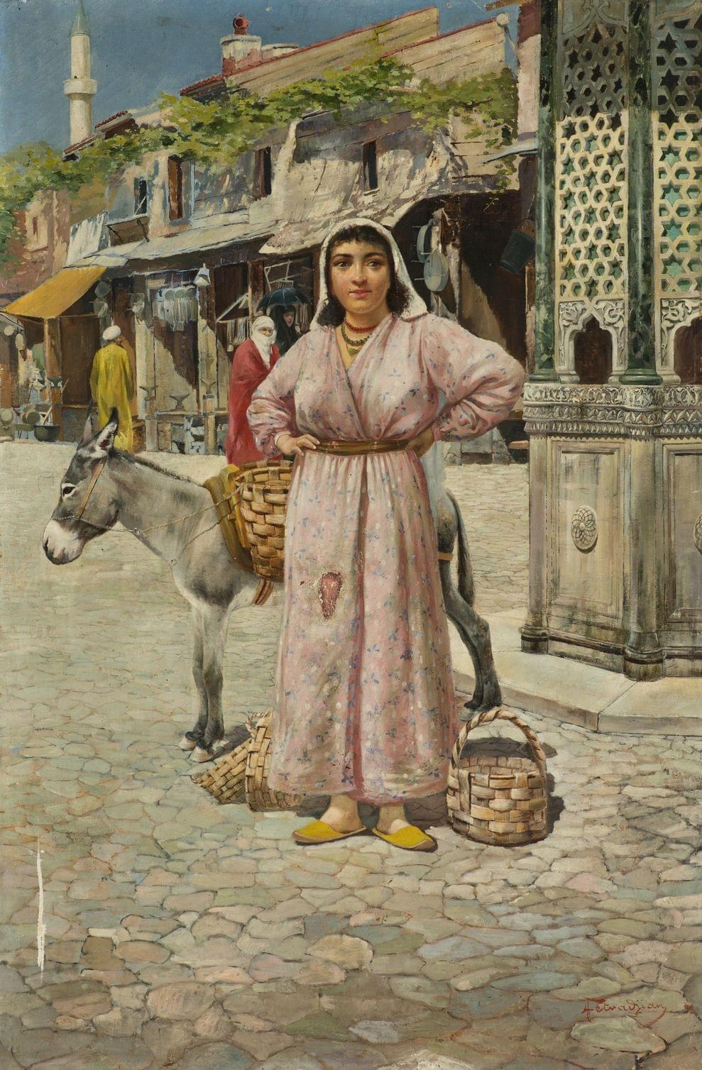 Vue d'une casbah, huile sur toile Paysage oriental, huile sur to...