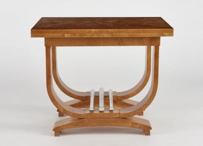 Bois fruitier à décor peint d'une ville surréaliste, porte un mo...