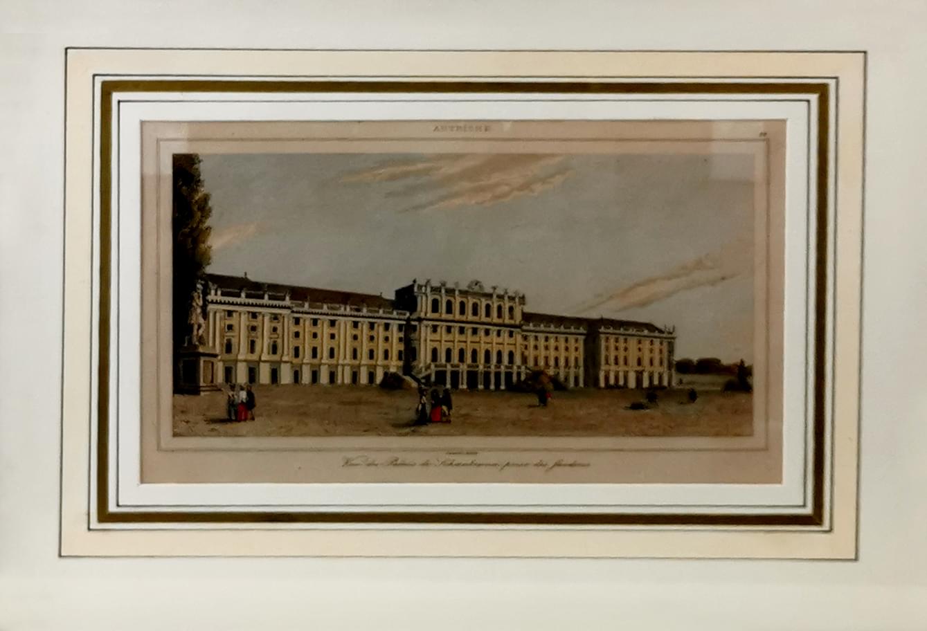Paire de vues du château de Schönbrunn et du Belvédère, gravure, 10x18 cm