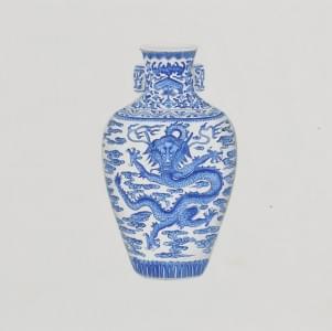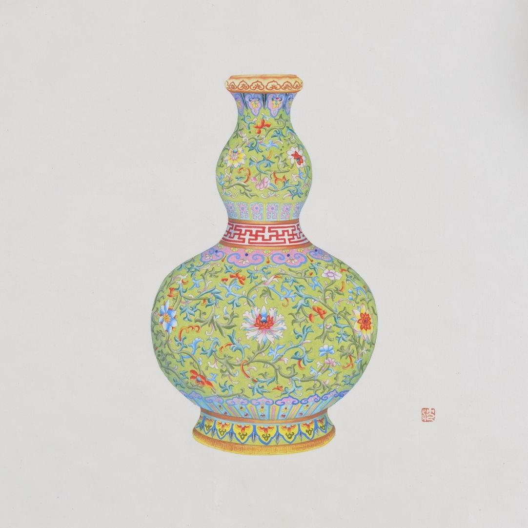 Vase gourde et potiche, paire d'aquarelles sur papier, 36x36 cm