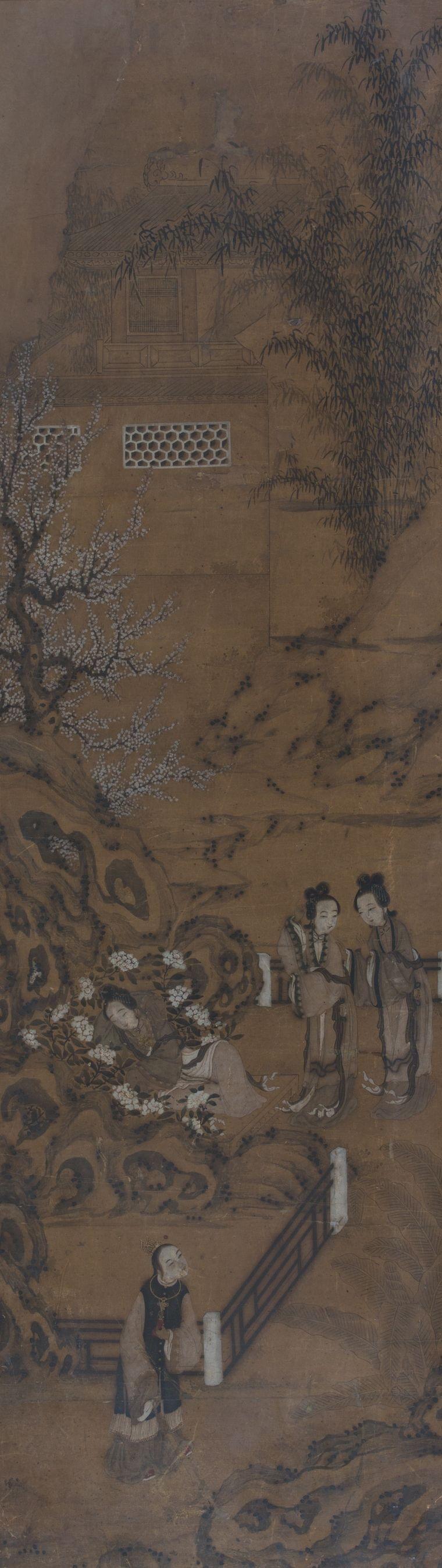 Jardin animé, encre et gouache sur papier, 118x35 cm