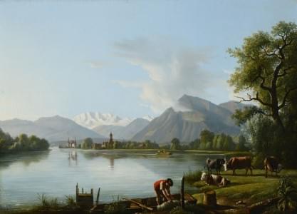 Lac de Thoune, huile sur toile, 64x88 cm. Provenance: galerie Mo...