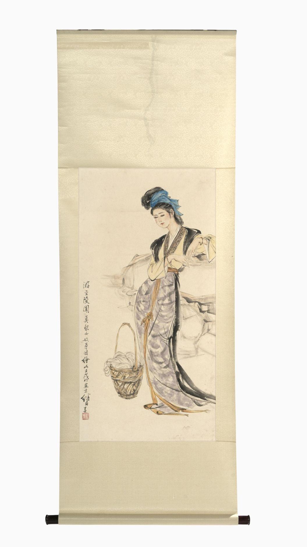 Jeune chinoise, encre sur papier de riz monté en rouleau, signé et cachet de l'artiste, 97x49 cm