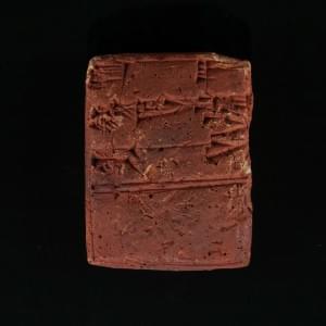 Inscrit de 4 lignes cunéiformes courant sur deux faces, argile,...