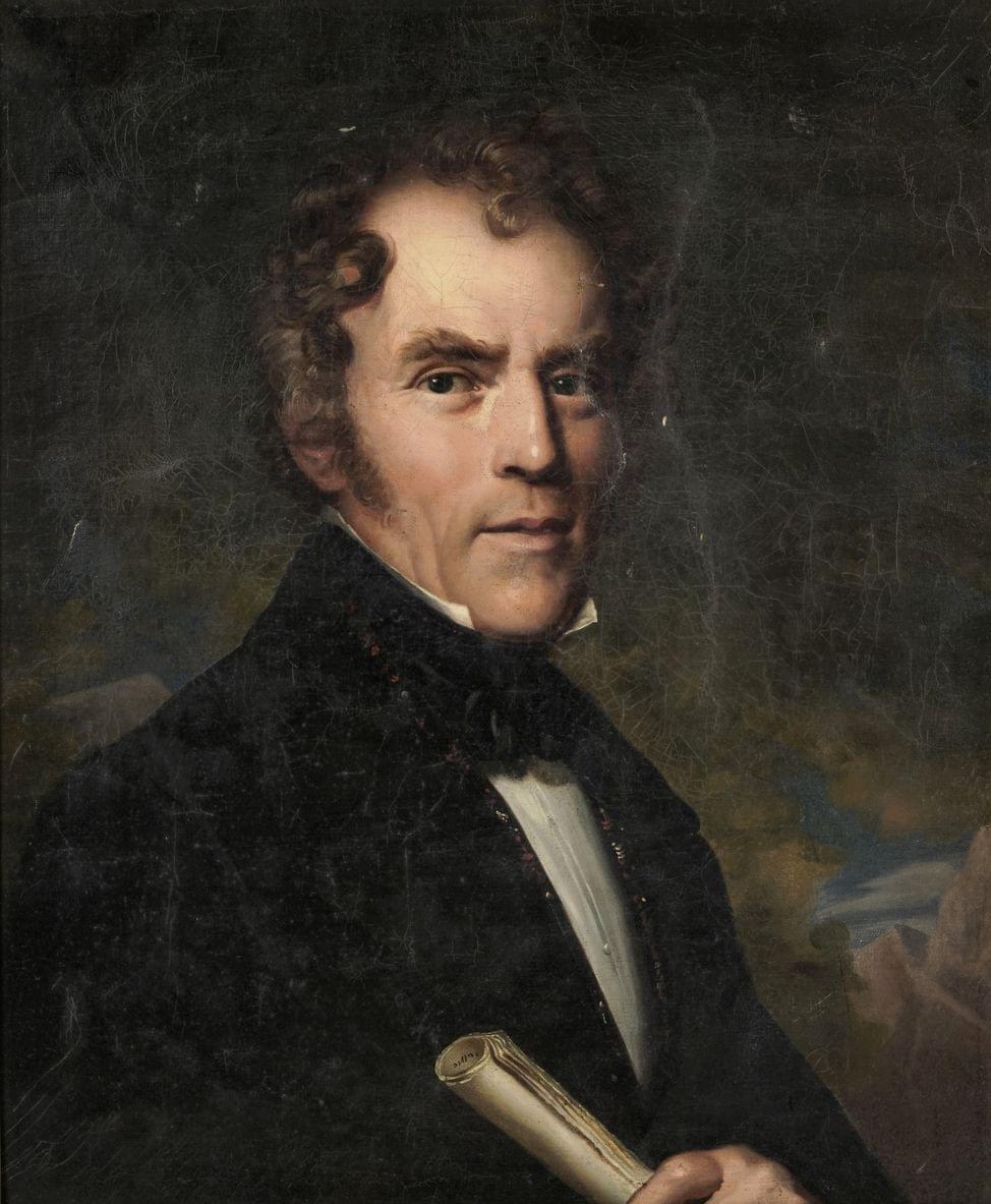 Portrait d'homme au parchemin, huile sur toile, 60x50 cm