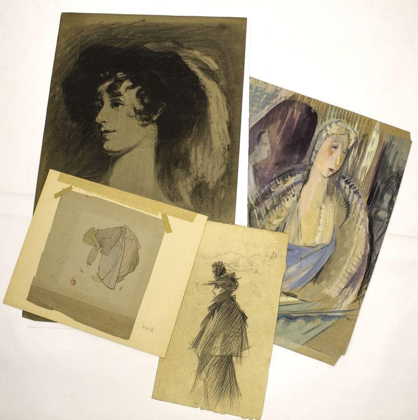 Portraits, étude pour la revue artistique, aquarelle, encre, fusain. On joint un portrait cubiste à l'encre, de 7,5x6 à 30,5x48 cm (11 dessins)