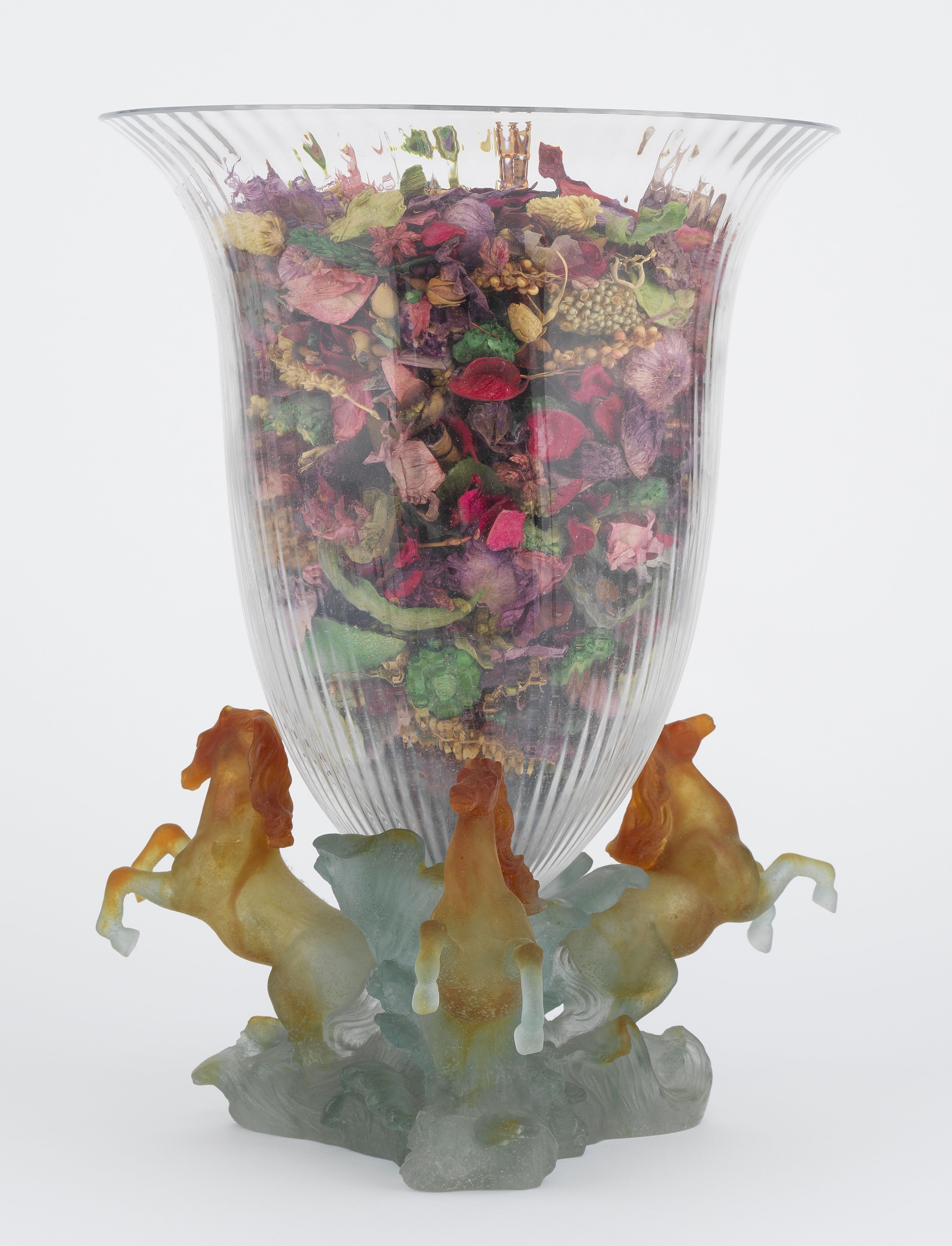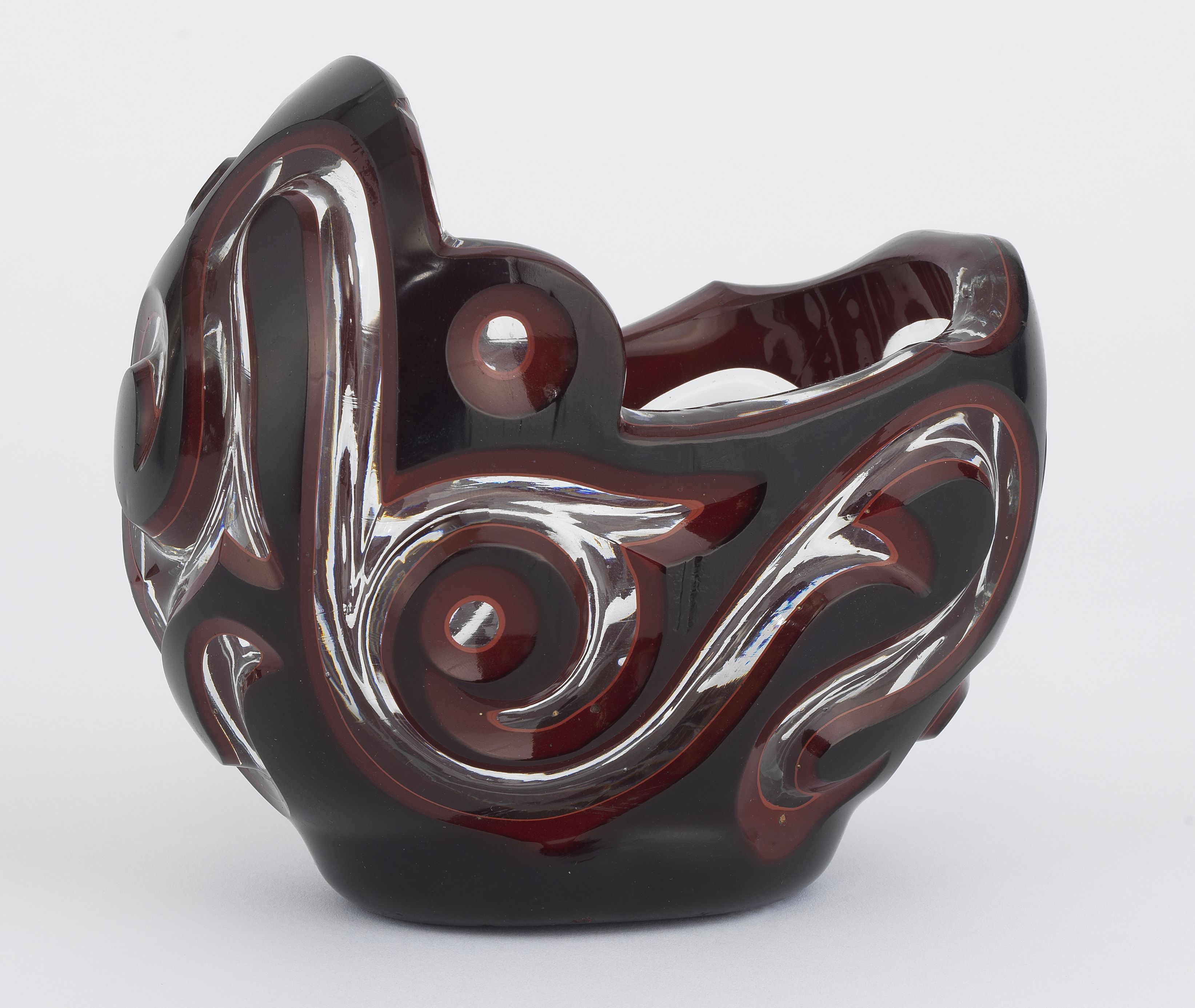 Verre multicouche sang de bœuf et translucide à décor d'arabesqu...
